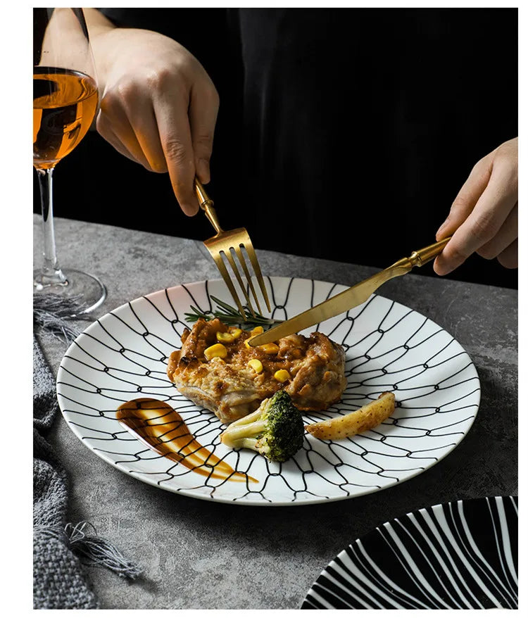 Geometric Design Gold Plating Meal Plate Porcelain Kitchen Dinner Plates Ceramics Food Tray Salad Dish 6/8/10 Inch 1Pcs