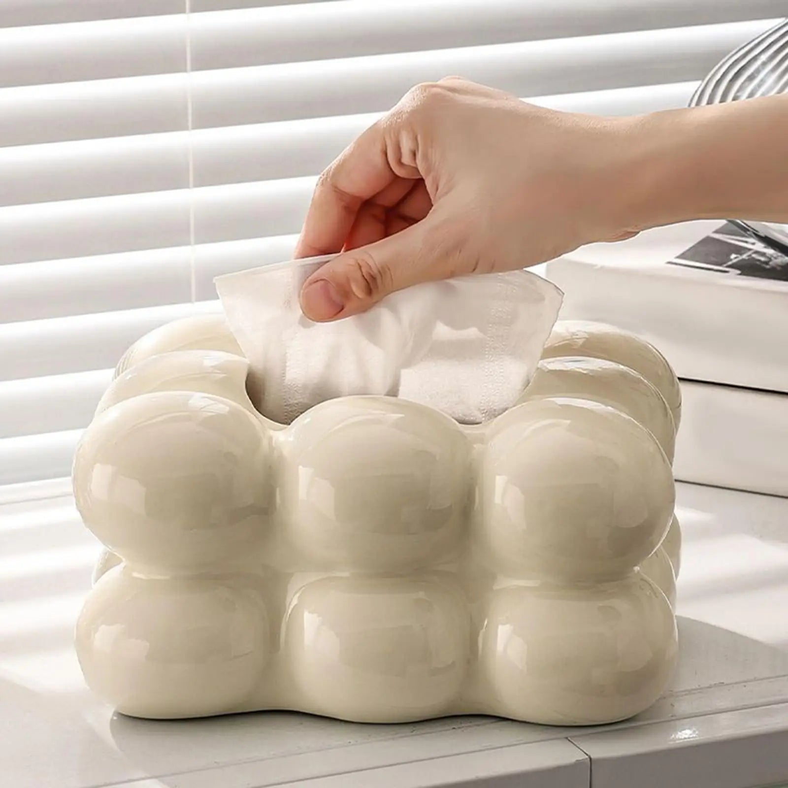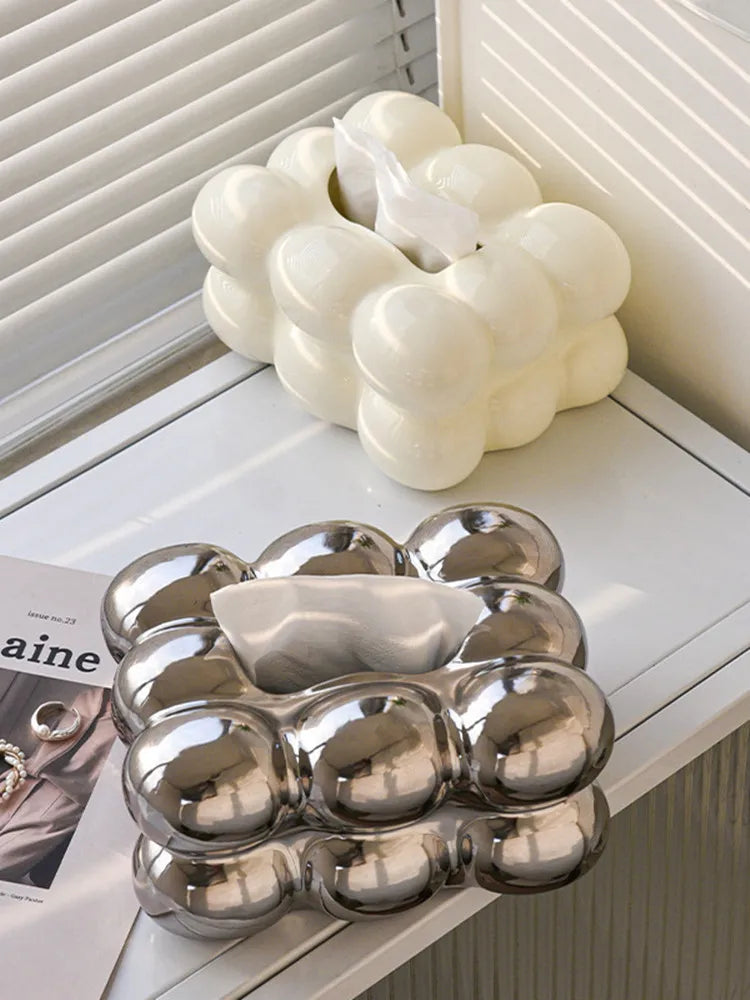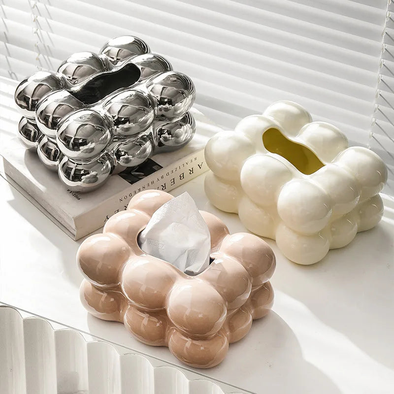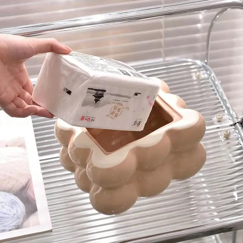 Geometry Tissue Box Cover Decorative Facial Tissue Holder Case Container for Bedroom Tissue Box Covers Rectangular Ceramic