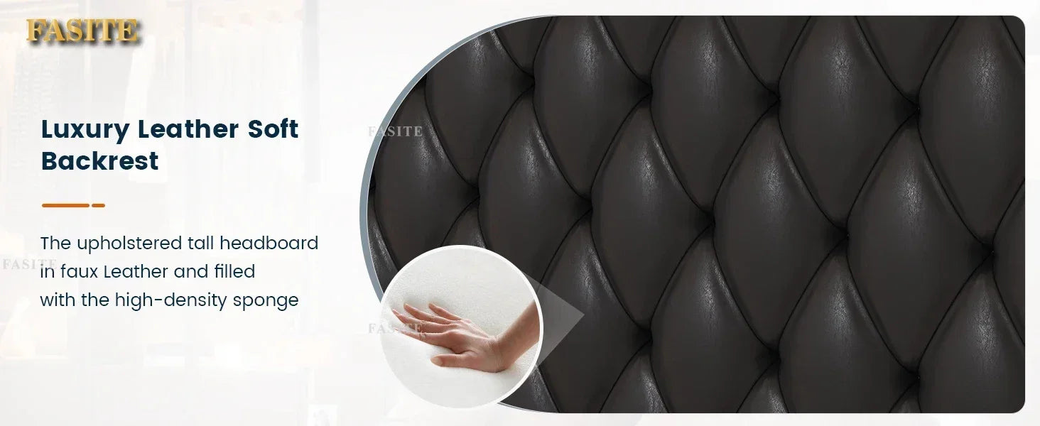 Gepolsterter Queensize-Bettrahmen aus PU-Leder mit tiefem, getuftetem Kopfteil und Kopfteilen für Schlafzimmer, schwarzer Plattform-Bettrahmen