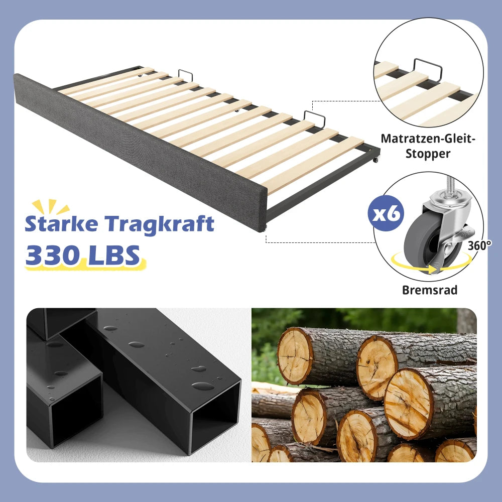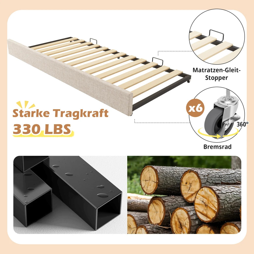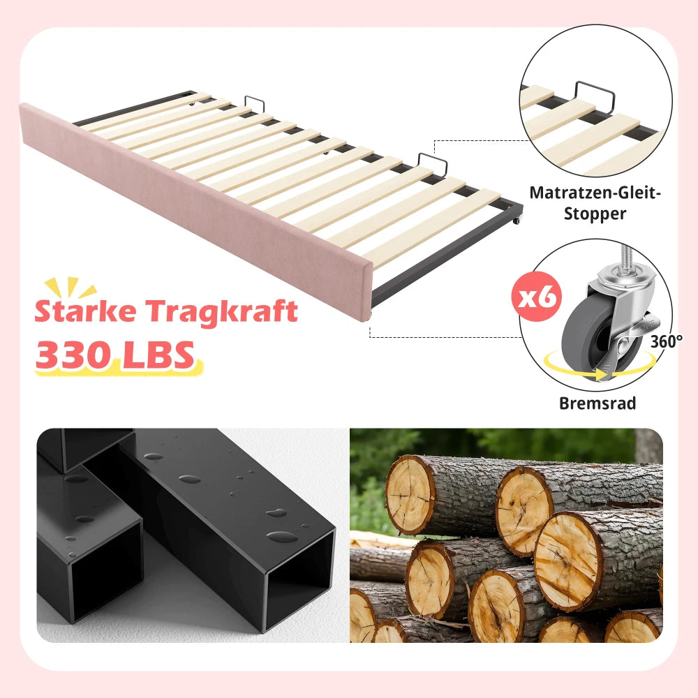 Gepolstertes Tagesbett 90x190cm, Tagesbett Schlafsofa mit ausziehbarem Bett 90x190cm, Kinderbett mit Gitter ohne Matratze