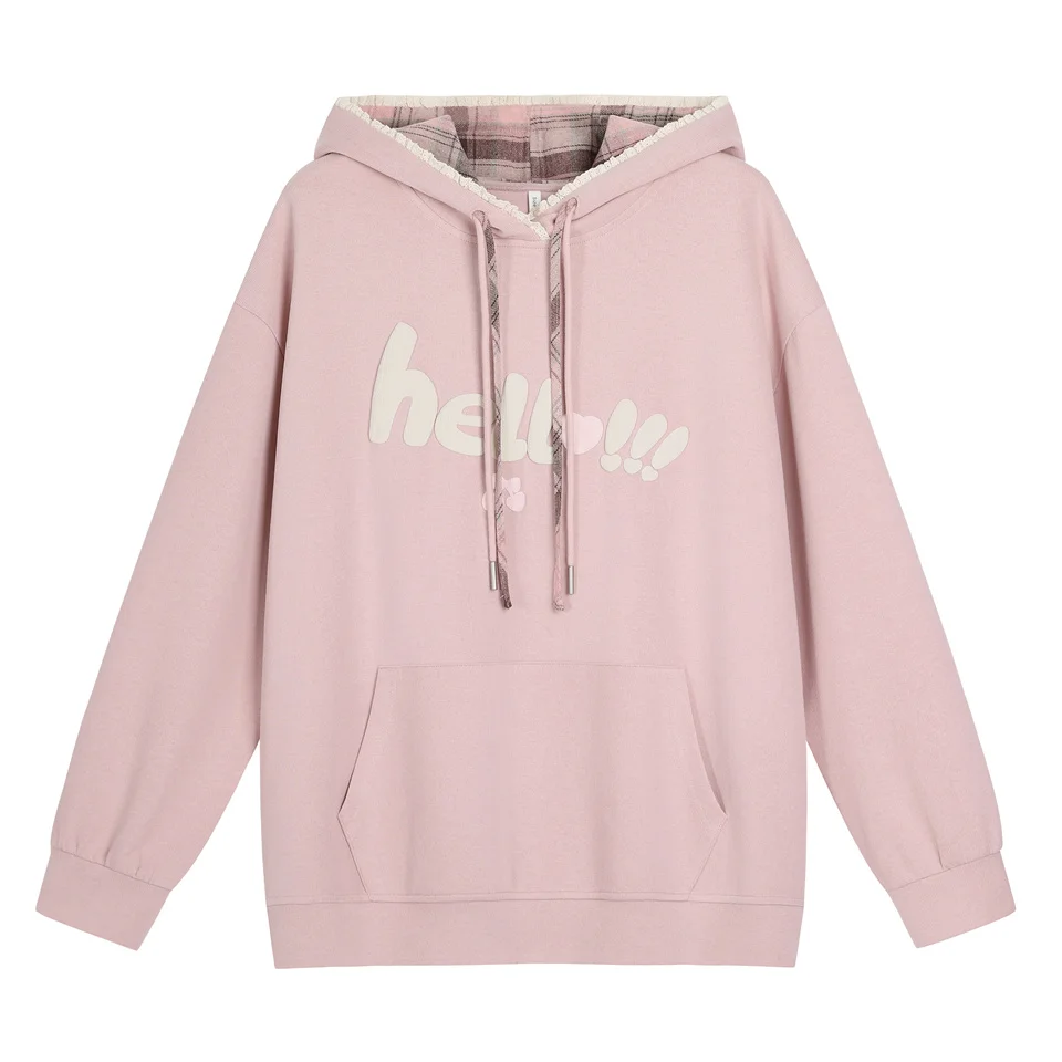 GIBSIE Plus Size Kängurutasche Kordelzug Hoodies Damen Herbst und Winter Kapuze Langarm bedruckt lose Sweatshirt Tops