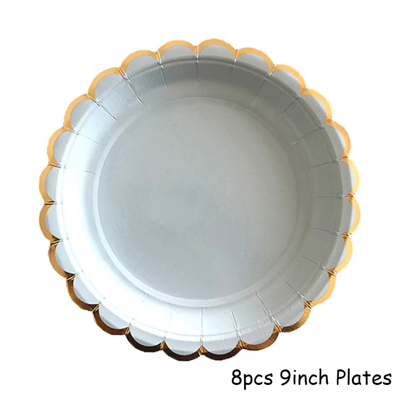 Gold Blue Party Disposable Tableware Paper Straw Cups Plates Napkins Baby Shower Favors Birthday Wedding Decor Party Supplies