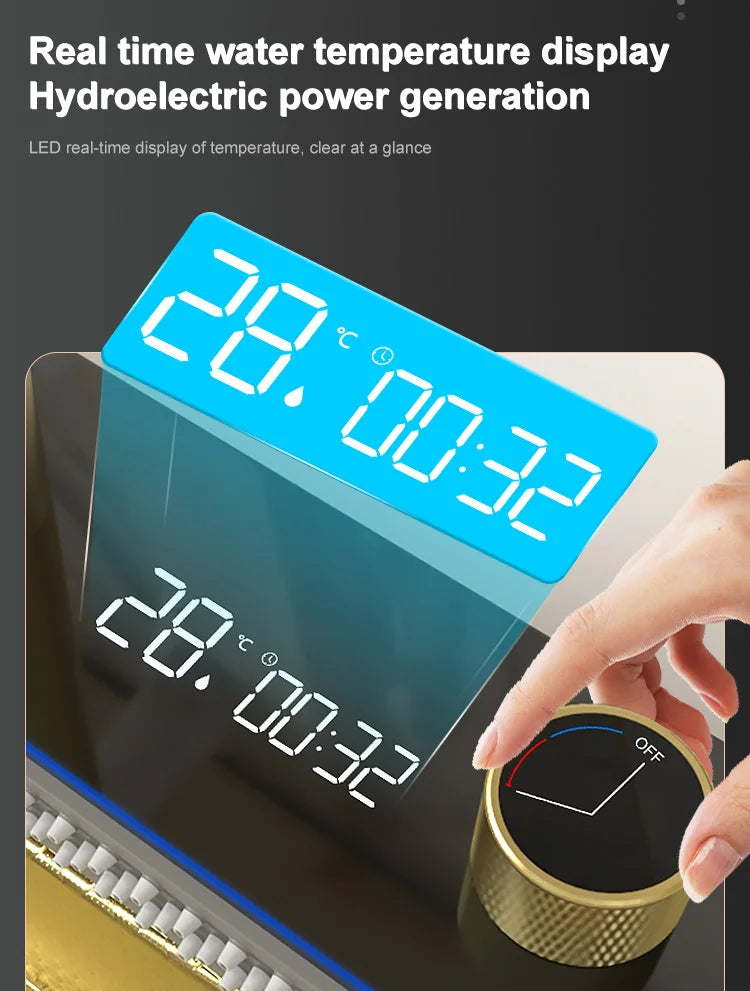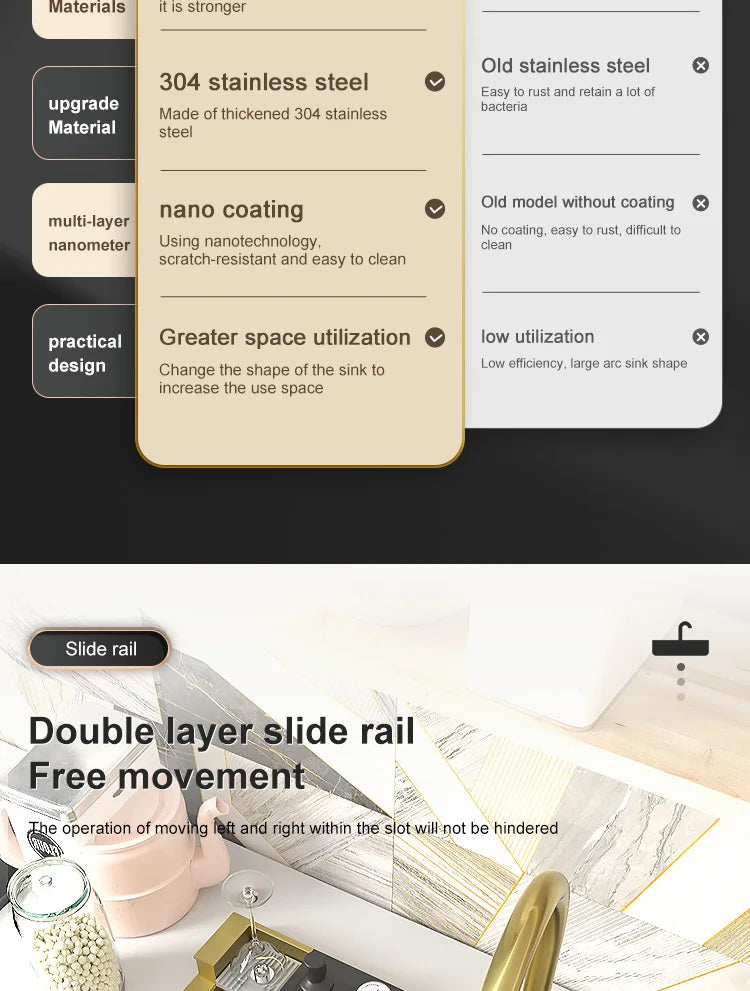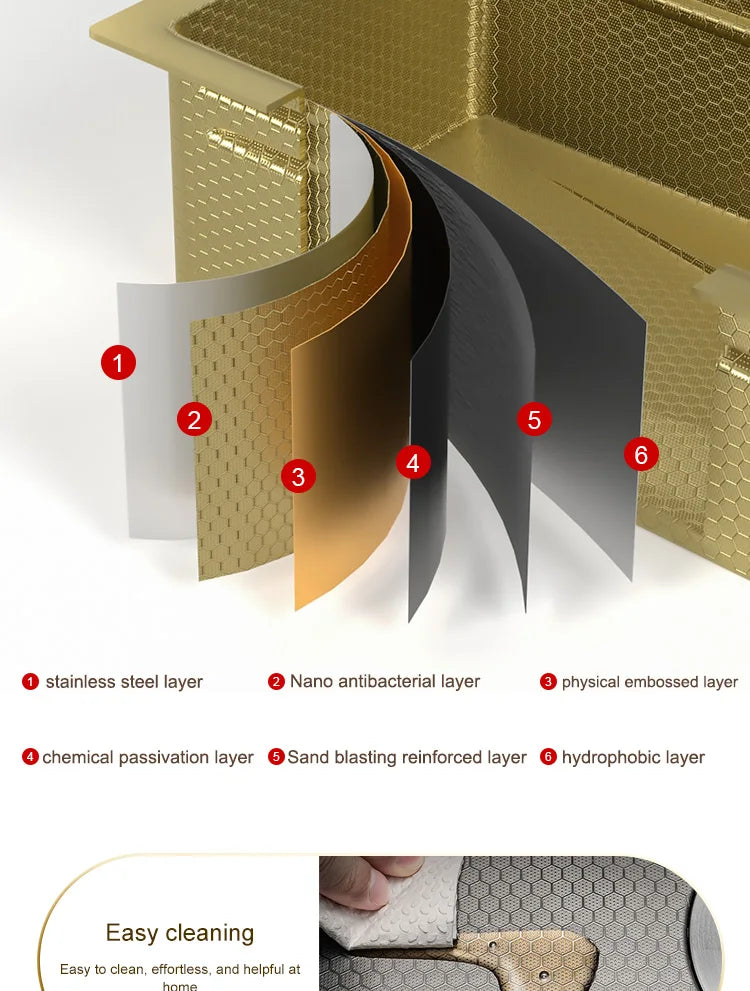 Golden Stainless Steel Waterfall Kitchen Sink Gold Embossed Extra Large Single Slot Digital Display Dishwashing Basin 100x50cm