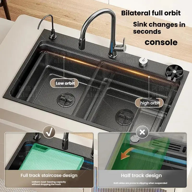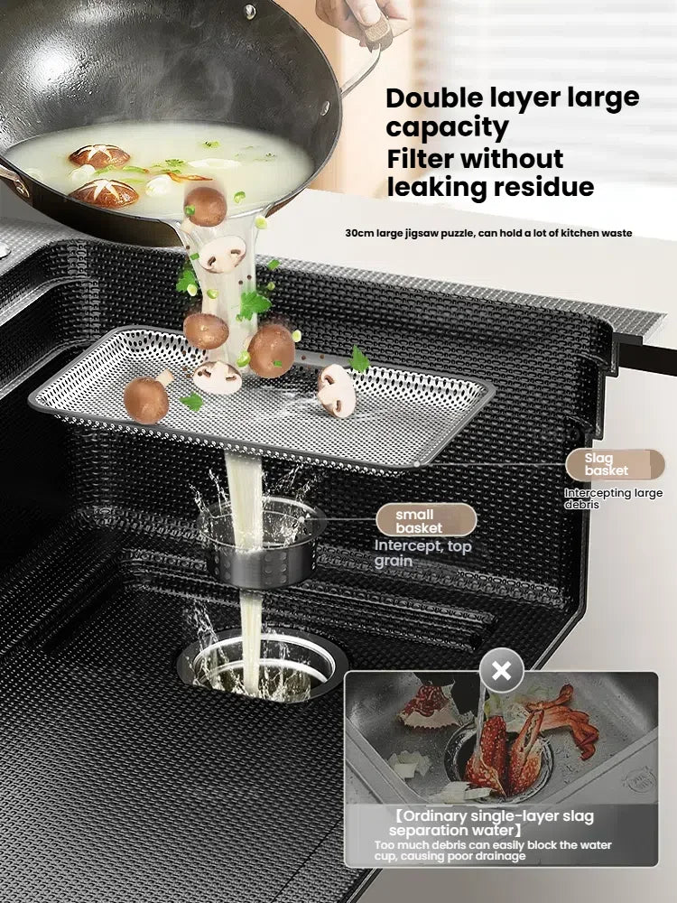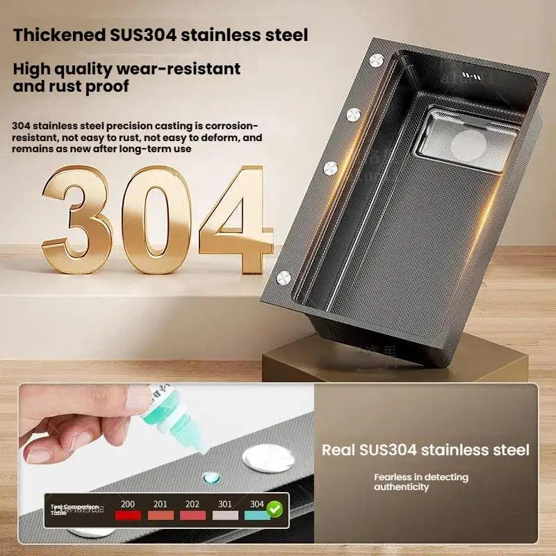 Gray 304 Stainless Steel Kitchen Sink Wash Dish Bowl Nano Embossing Large Single Slot Multifunctional Household Undermount Basin