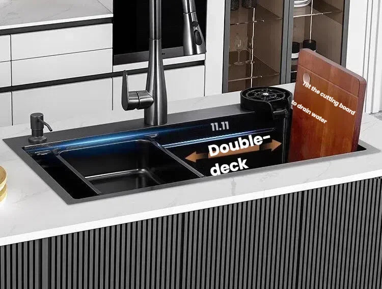 Gray Large Single Slot Stainless Steel Kitchen Sink Multifunctional Wash Dish Basin Nano Honeycomb Embossed Undermount Basin