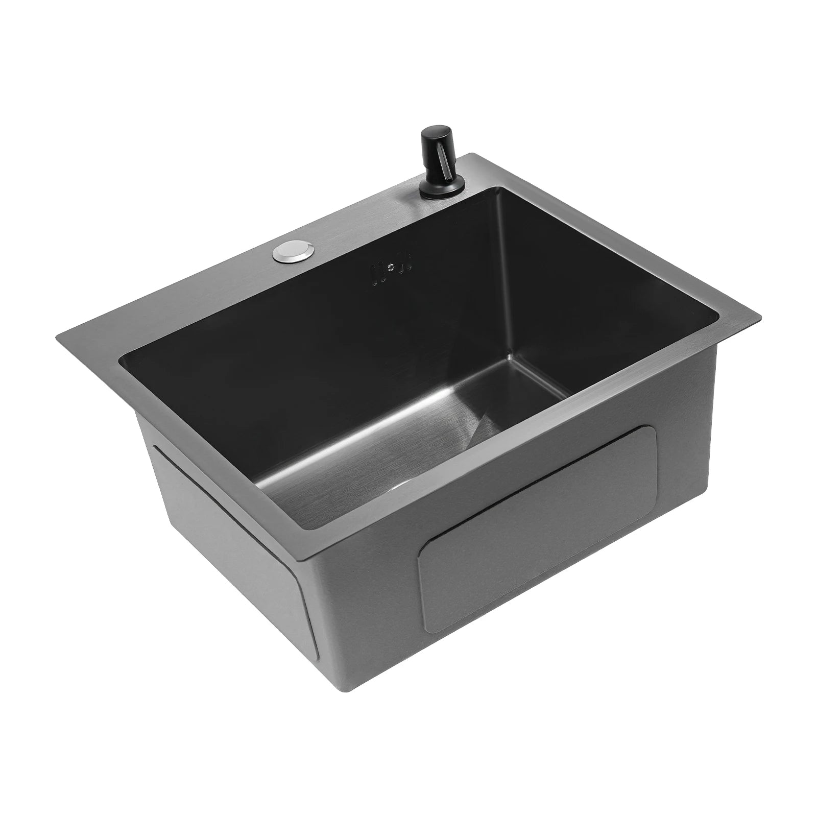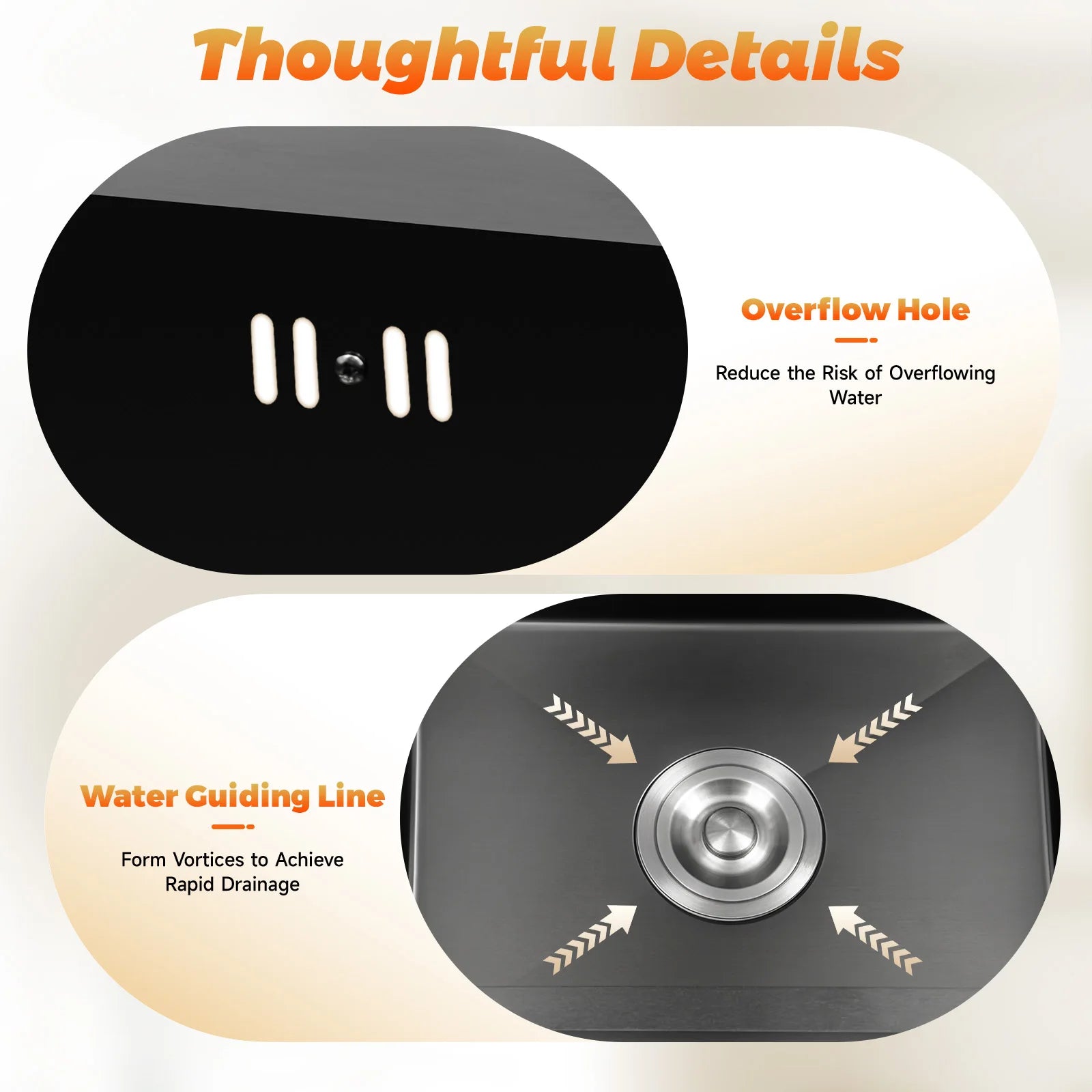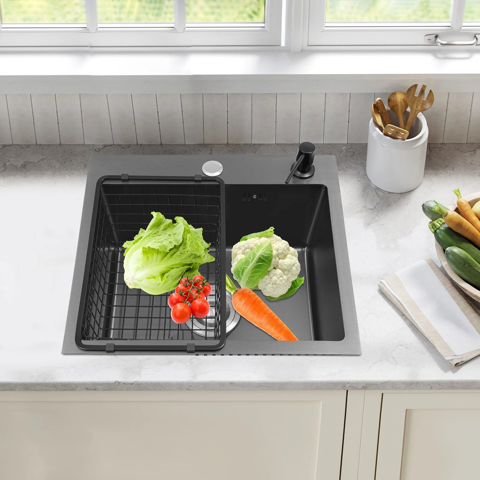 Großes schwarzes Abtropfgestell für die Küche, Küchenspüle aus Edelstahl mit Abtropffläche, Gemüse-Doppelbecken mit Seifenspender