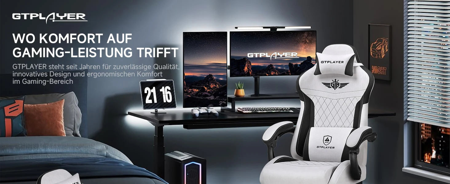 GTPLAYER Gaming Stuhl, Ergonomischer Gamer Stuhl aus Kunstleder-Stoff mit Lendenwirbelstütze, PC-Stuhl mit verbreiterter Rückenl