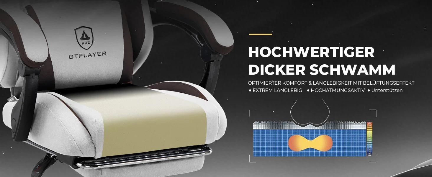 GTPLAYER Gaming Stuhl, Ergonomischer Gamer Stuhl aus Stoff mit Lendenwirbelstütze, PC-Stuhl mit verbreiterter Rückenlehne