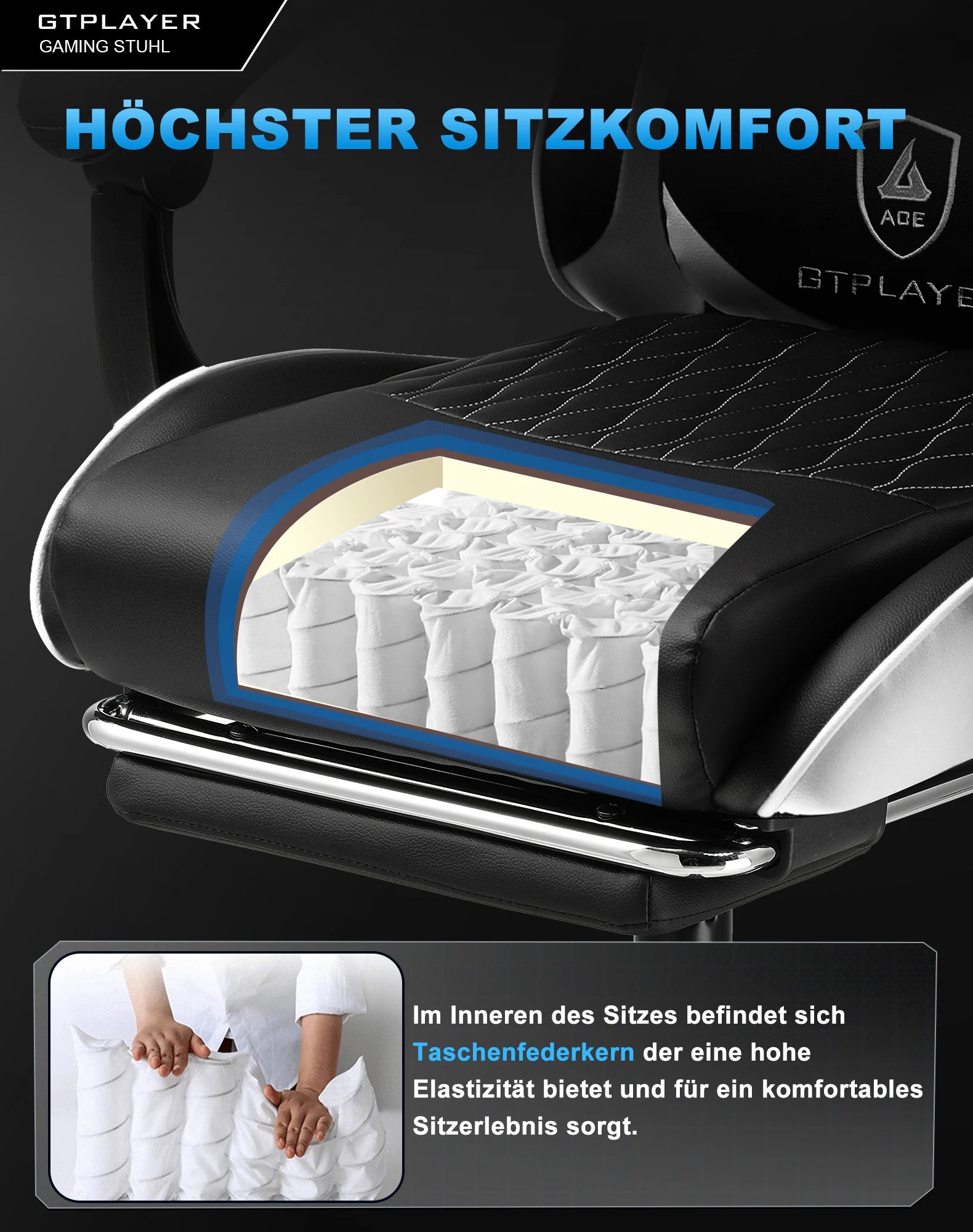 GTPLAYER Gaming Stuhl, Gamer Stuhl, Ergonomischer Bürostuhl mit Fußstütze Verstellbare Lenden und Kopfkissen, Gaming Chair