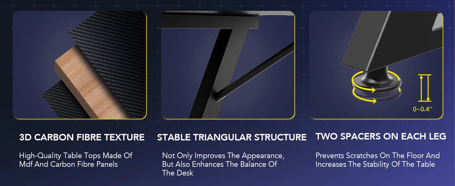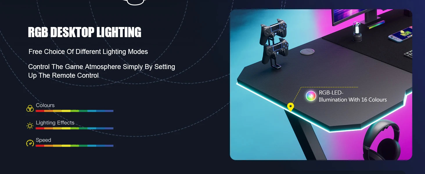 GTPLAYER Gaming Tisch, Gaming Schreibtisch 120 x 60cm, PC Tisch Gamer Tisch mit Kohlefaseroberfläche/LED/Steckdose, Schwarz