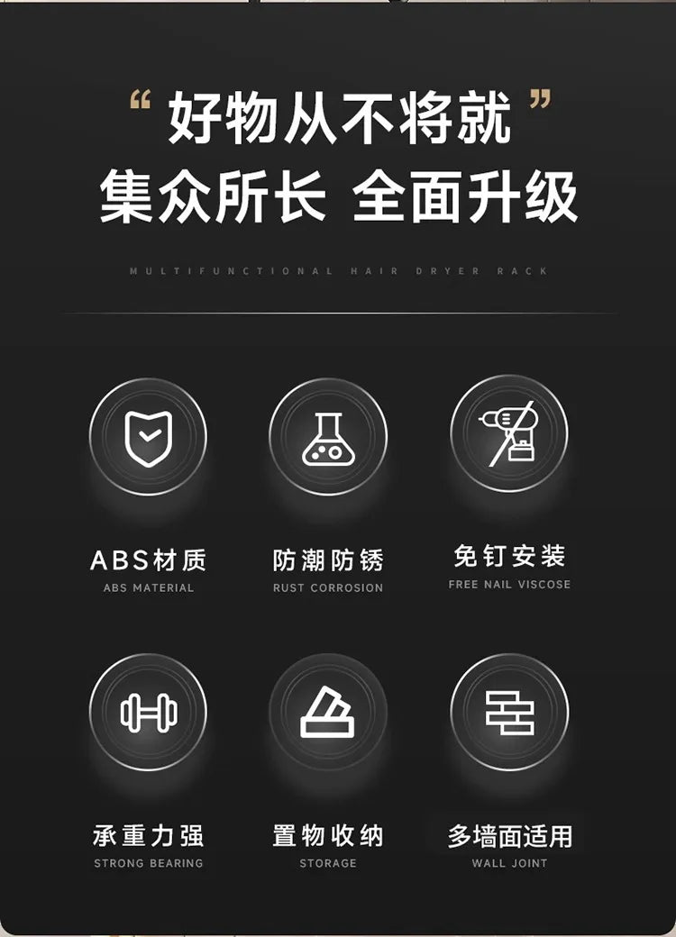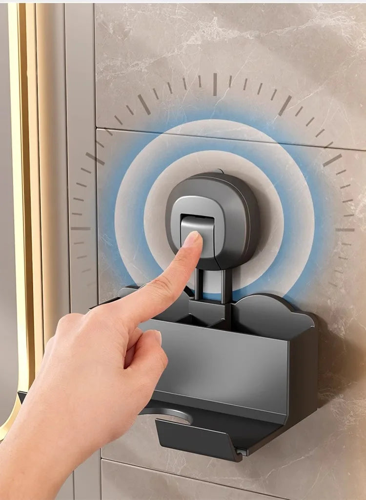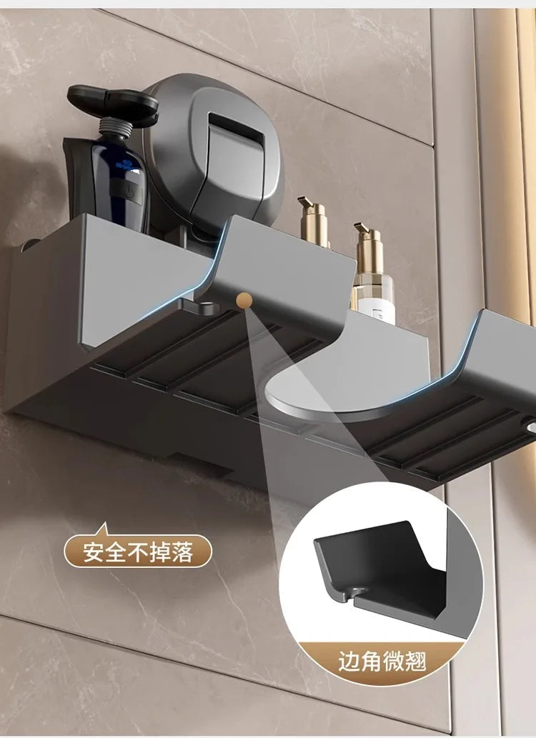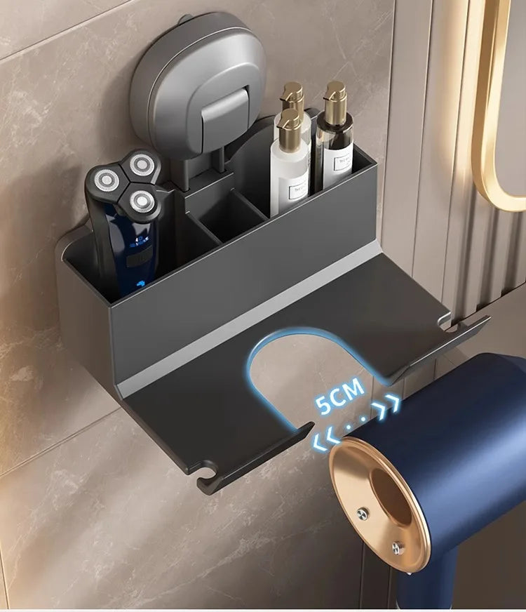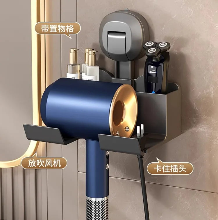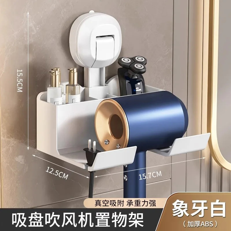 Halterung für Haartrockner, Aufbewahrungsregal mit Saugnapf, ohne Stanztoilette, Aufbewahrungsregal für das Badezimmer, Aufhänger für Haartrockner