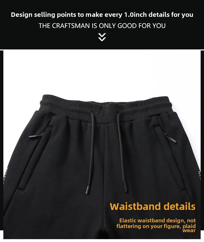 Herbst/Winter Fleece-gefütterte Herren-Hose mit Reißverschluss, warmes Fuß, Freizeithose, Übergröße, lockere Passform, gerade Bein-Jogginghose, trendig