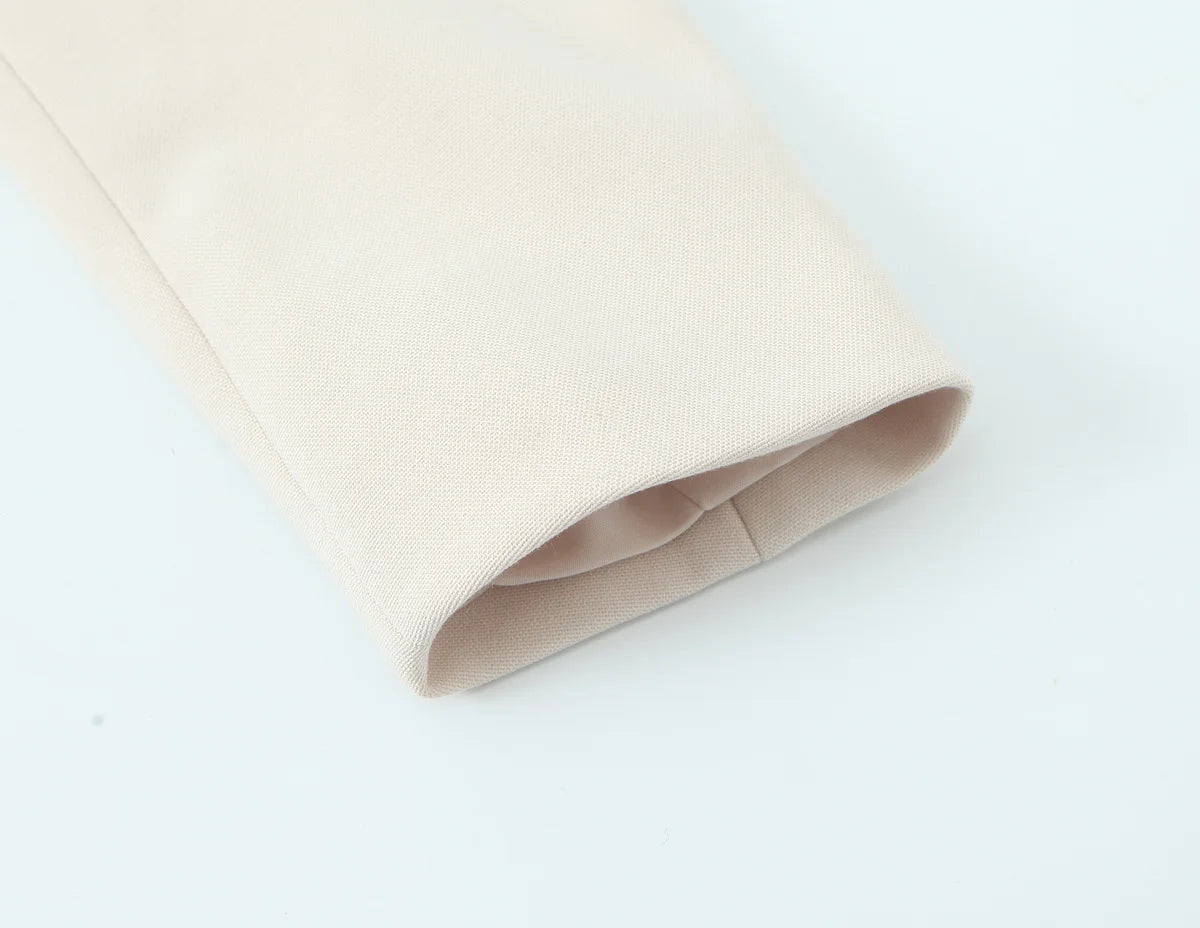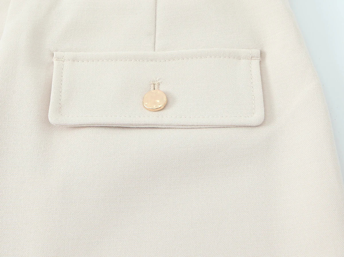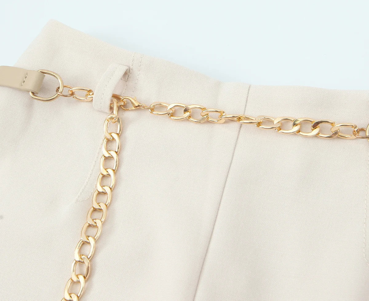 HH Women Solid Pant Set Long Sleeve O-Neck Double-Breasted Blazers+High Waist Chain Matching Side Zipper Trousers Sets