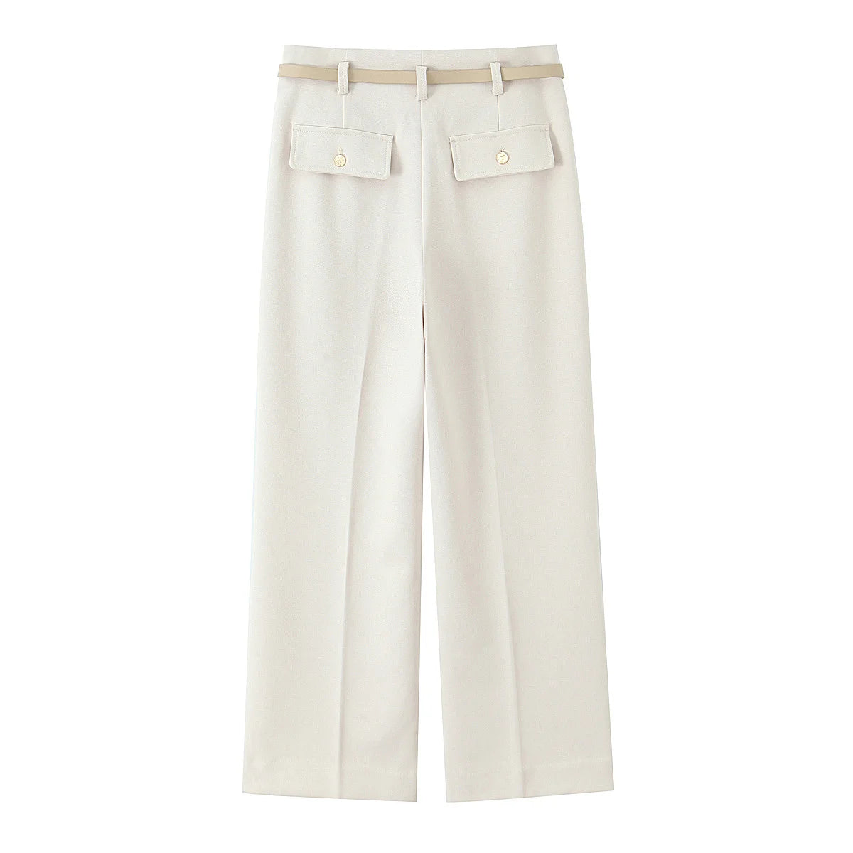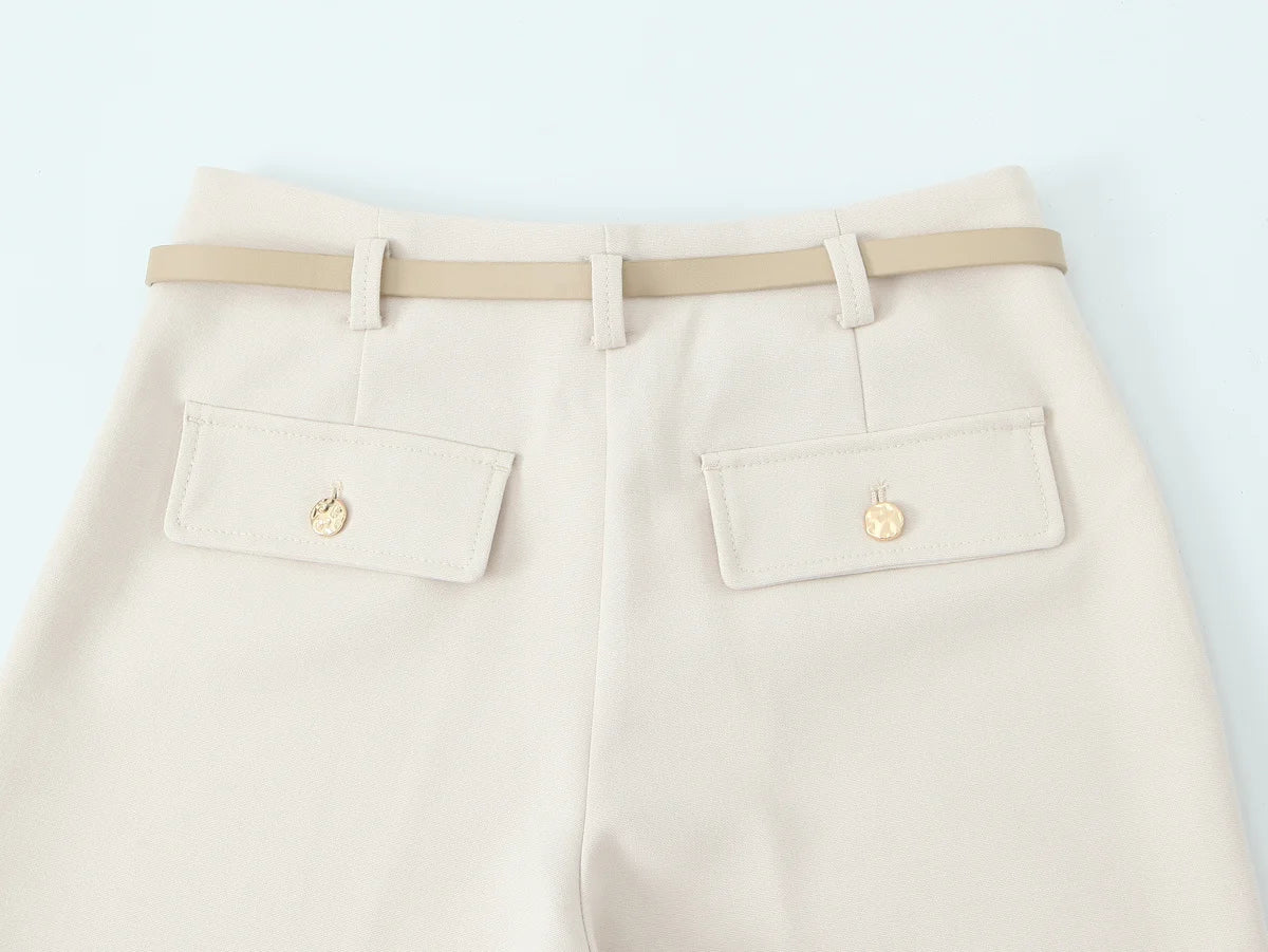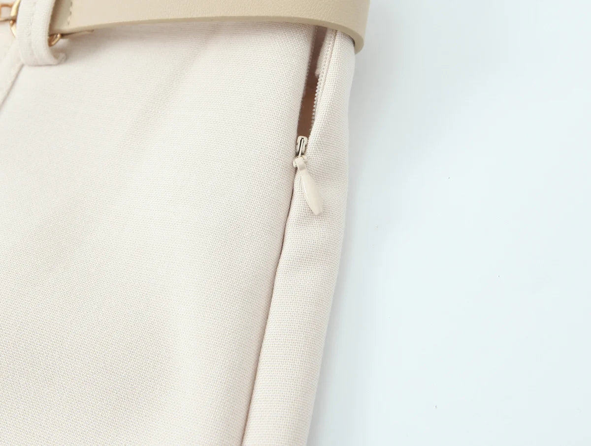 HH Women Solid Pant Set Long Sleeve O-Neck Double-Breasted Blazers+High Waist Chain Matching Side Zipper Trousers Sets