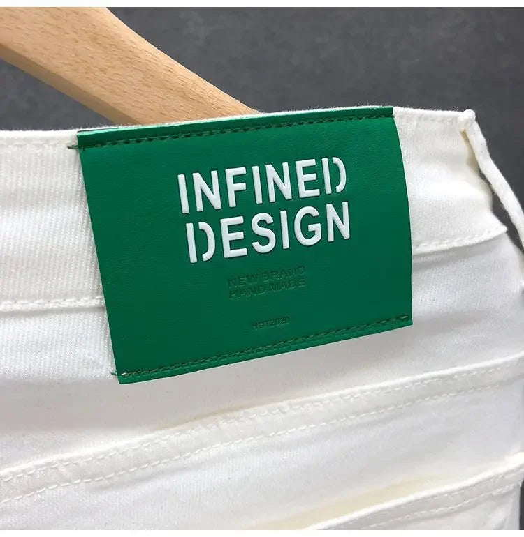 High-End Slim Fit Black White Men's Jeans Elastic Straight Leg Summer Thin Denim Casual Fashion Brand AE Stock Origin China