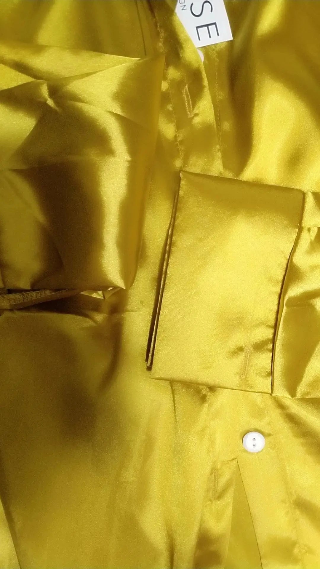 High Quality Silkly Satin Women's Shirt Office Ladies Long Sleeve Blouses Polo Neck Gold shirt Button Luxury Casual women tops