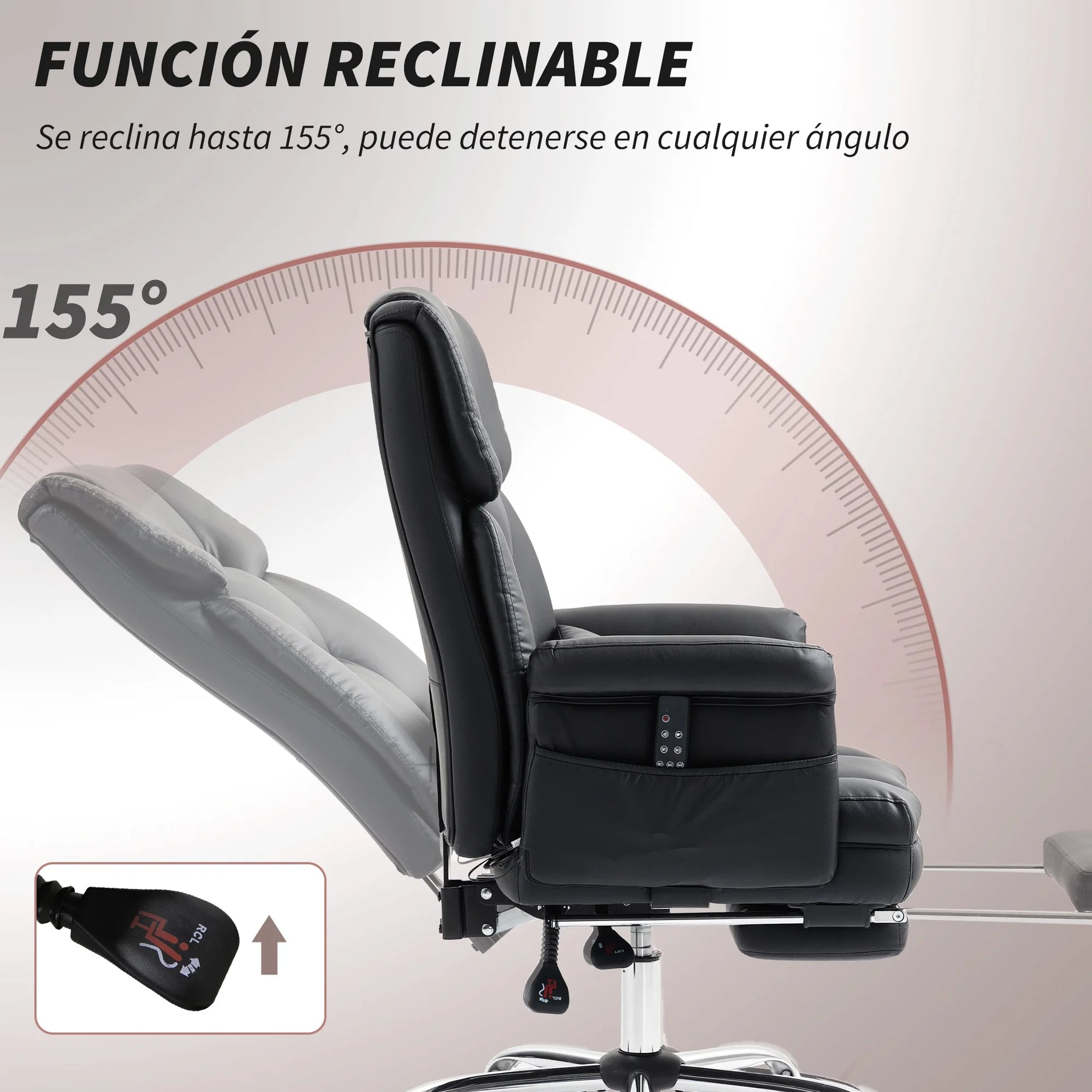 Homcom Bürostuhl mit 6 Massagepunkten, einziehbare Fußstütze, höhenverstellbar, Fernbedienung und Lordosenstütze, Schwarz