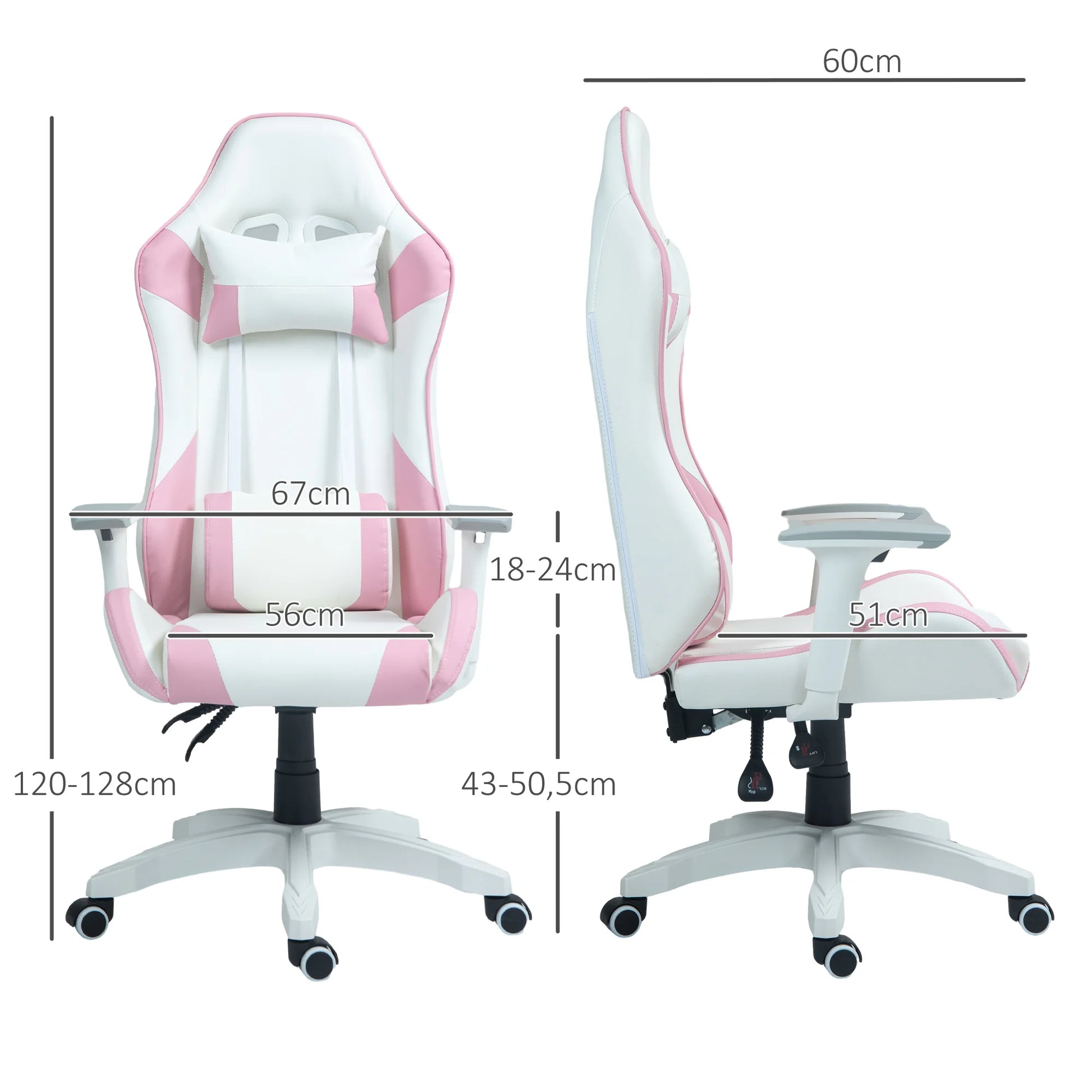 HOMCOM drehbarer Liegestuhl Gaming mit Lendenkissen 67x60x120-128 cm rosa