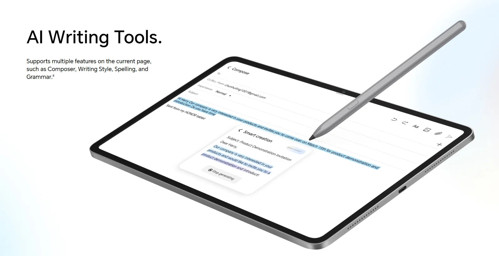 HONOR Pad 10 Tablet 8GB+256GB,12.1-inch 120Hz 2.5K(2560*1600) Display,Snapdragon 7 Gen 3 10100mAh Battery,MagicOS 9.0 (Android 15),8MP camera,WIFI 6,Bluetooth 5.3