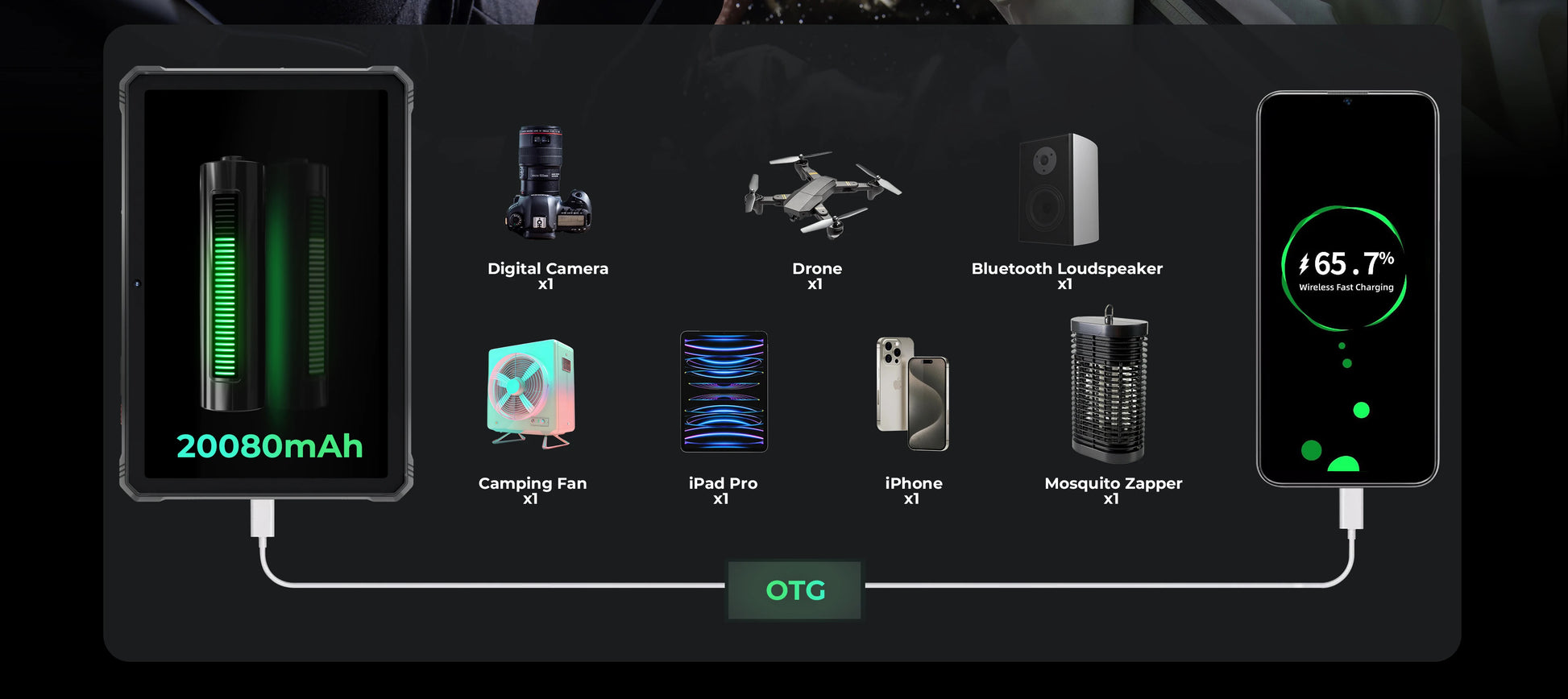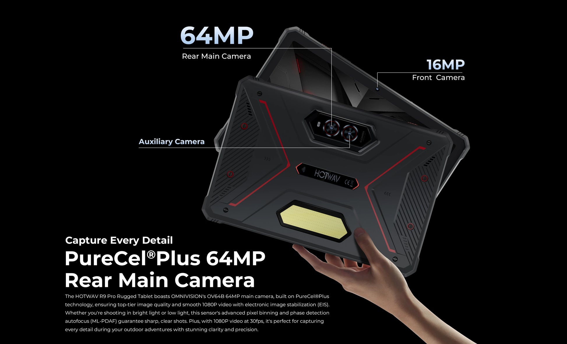 HOTWAV R9 Pro Rugged Tablet Android 14 11" FHD+ 20080mAh Pad 64MP Rear Camera 6GB 256GB Tablet PC With Super Camping light