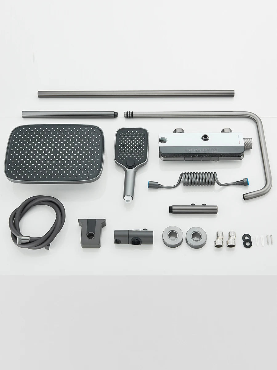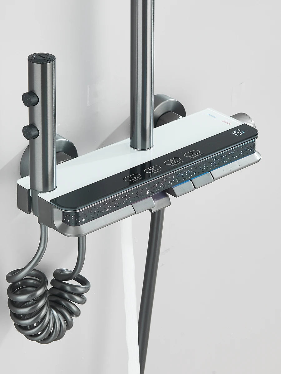 Intelligent Digital Display Luxury Shower Set Bathroom Wall Mounted Piano Key 4 Ways Water Outlet Rainlfall Shower Faucet System