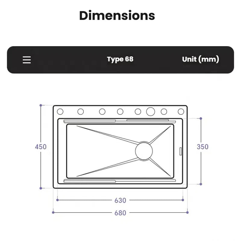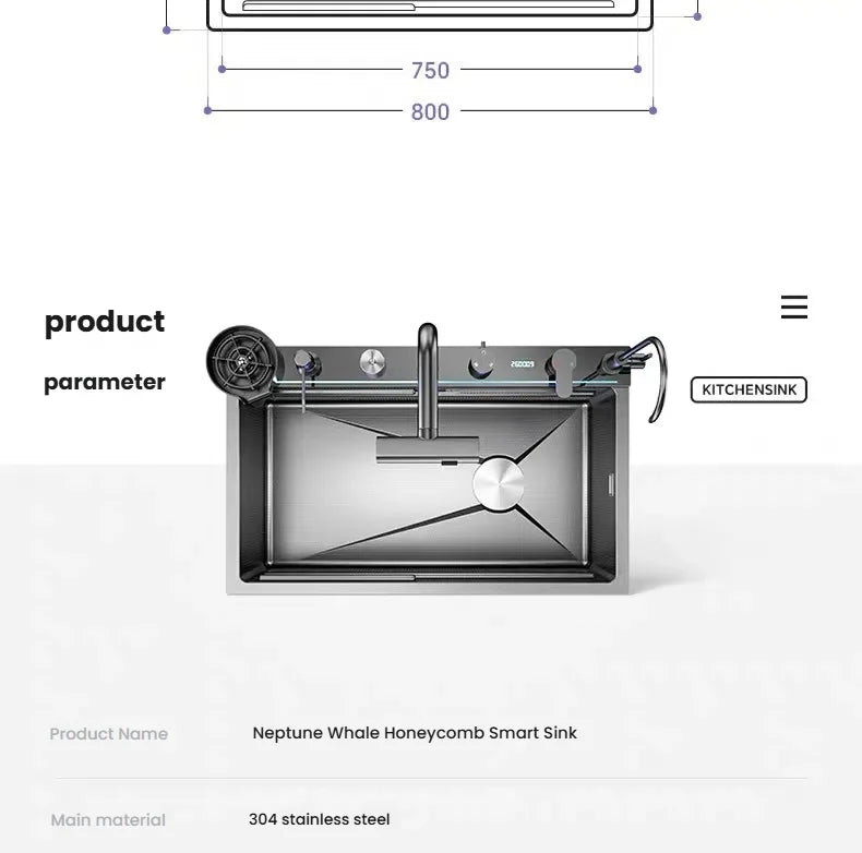 Intelligent Waterfall Stainless Steel Kitchen Sink MultiFunctional Digital Display Porous Large Single Slot Wash Dish Basin