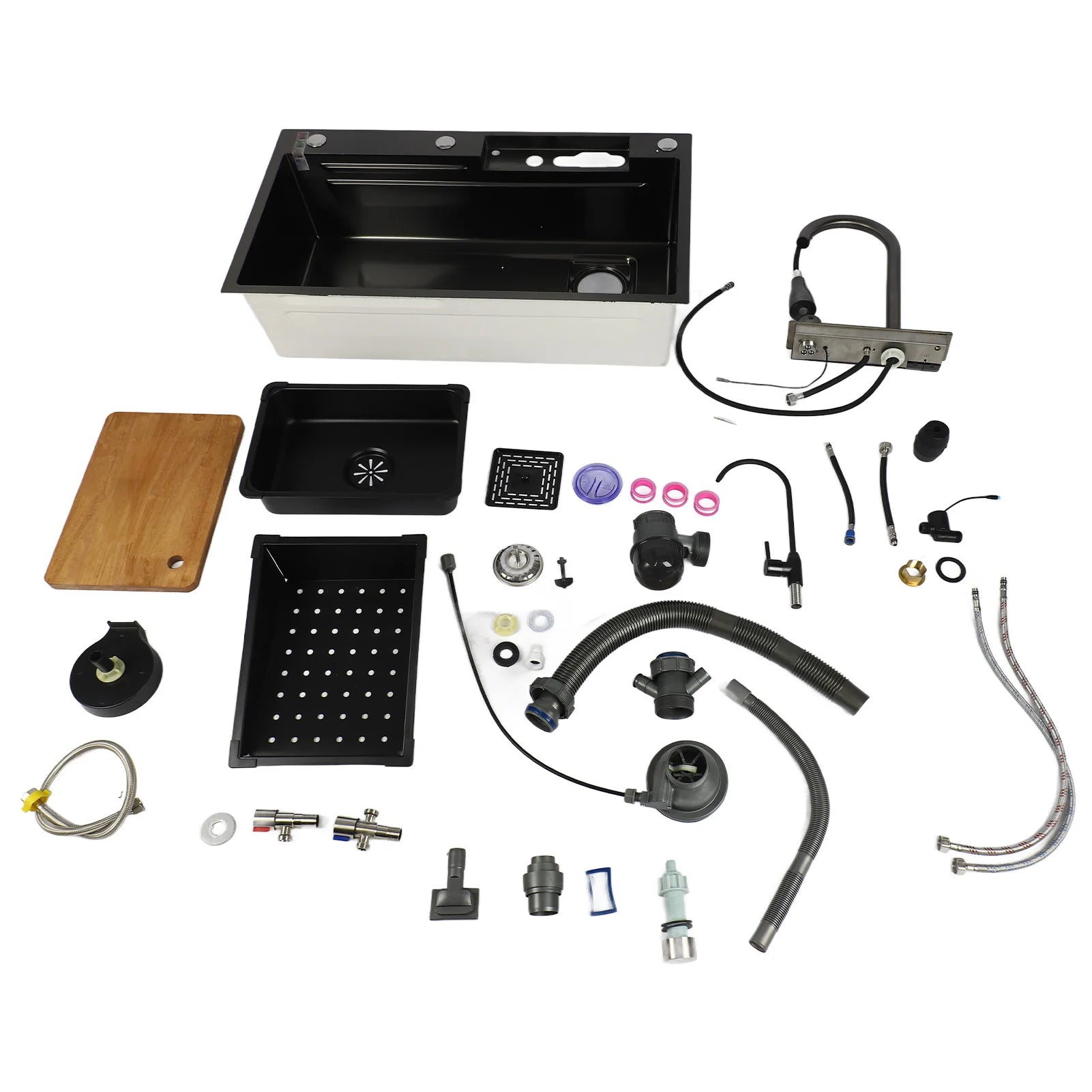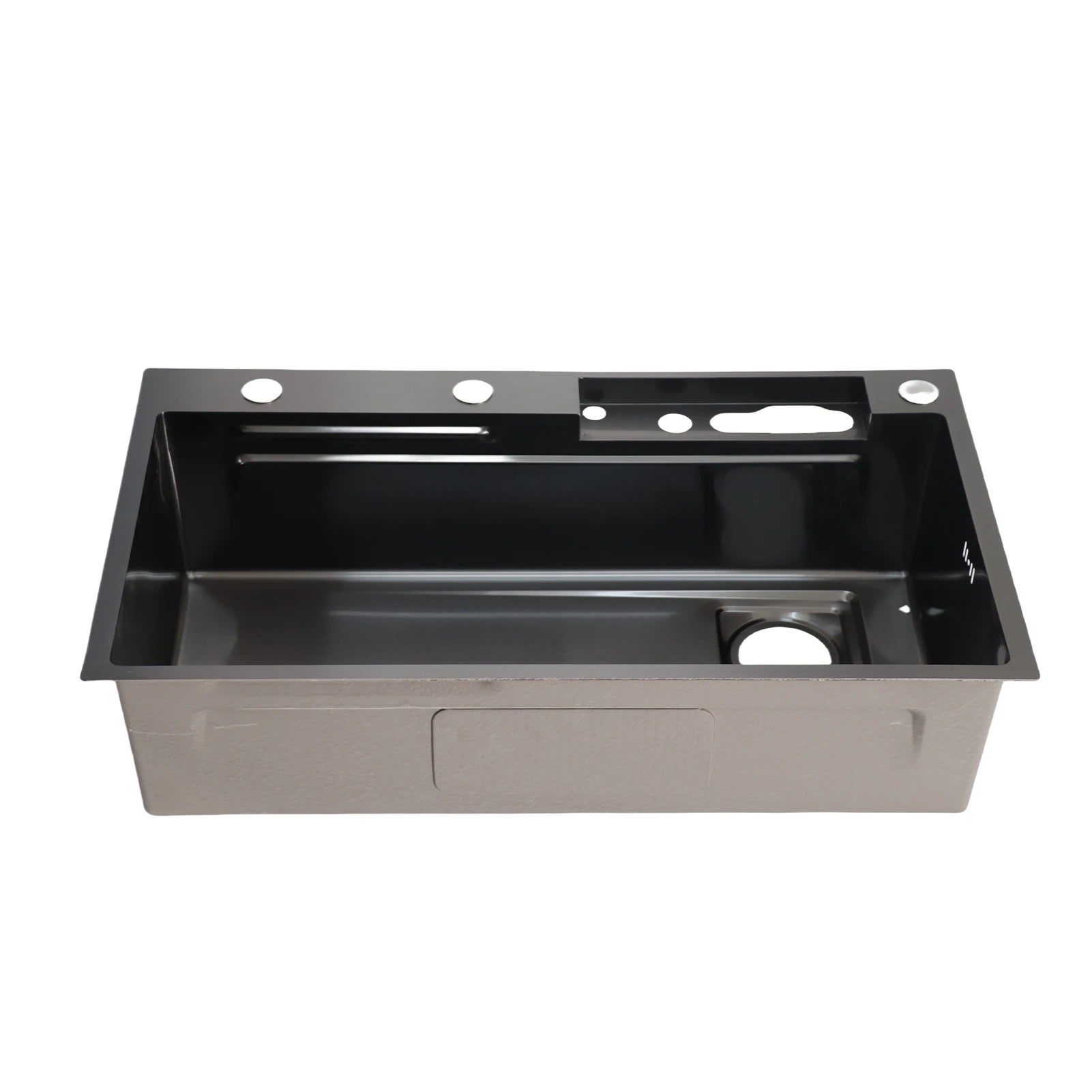 Intelligente Küchenspüle aus Edelstahl, verdickte gebürstete Oberfläche, großes Fassungsvermögen, Waschbecken mit Digitalanzeige, Küchenspüle