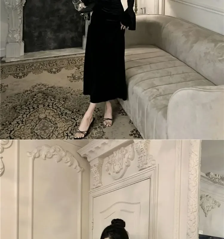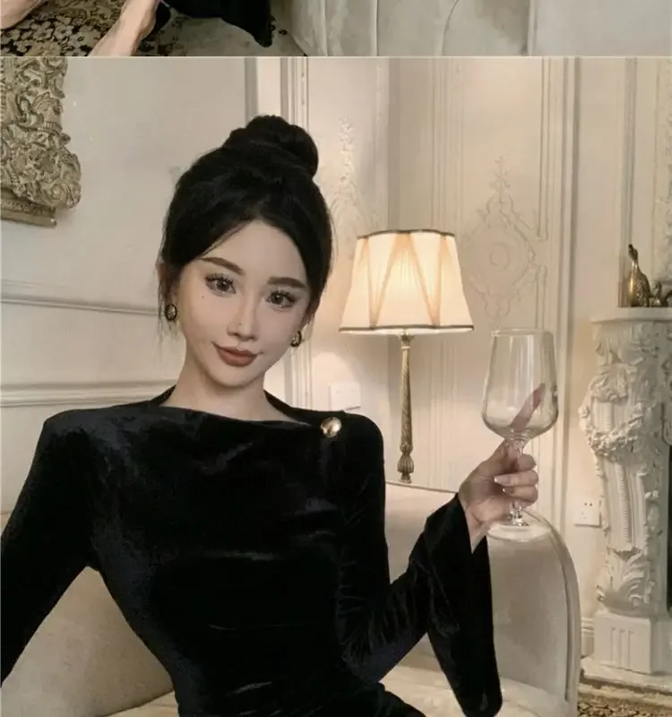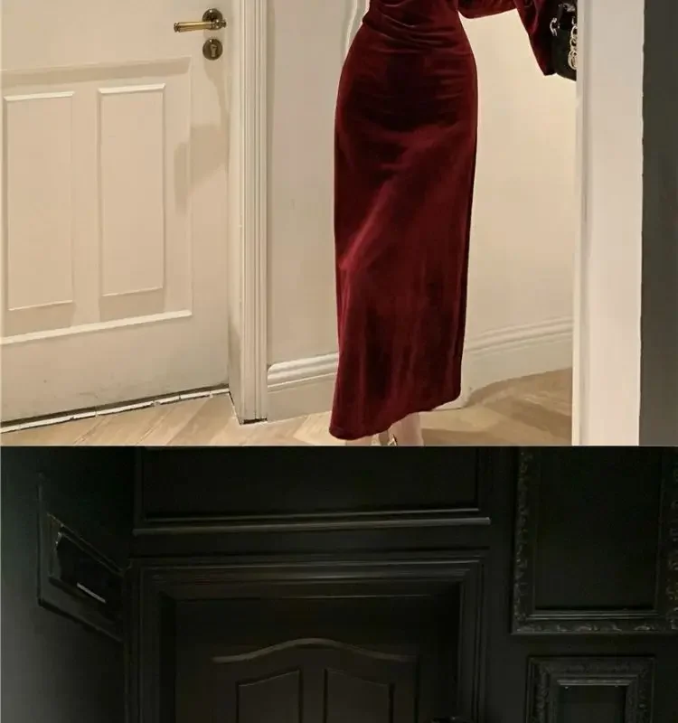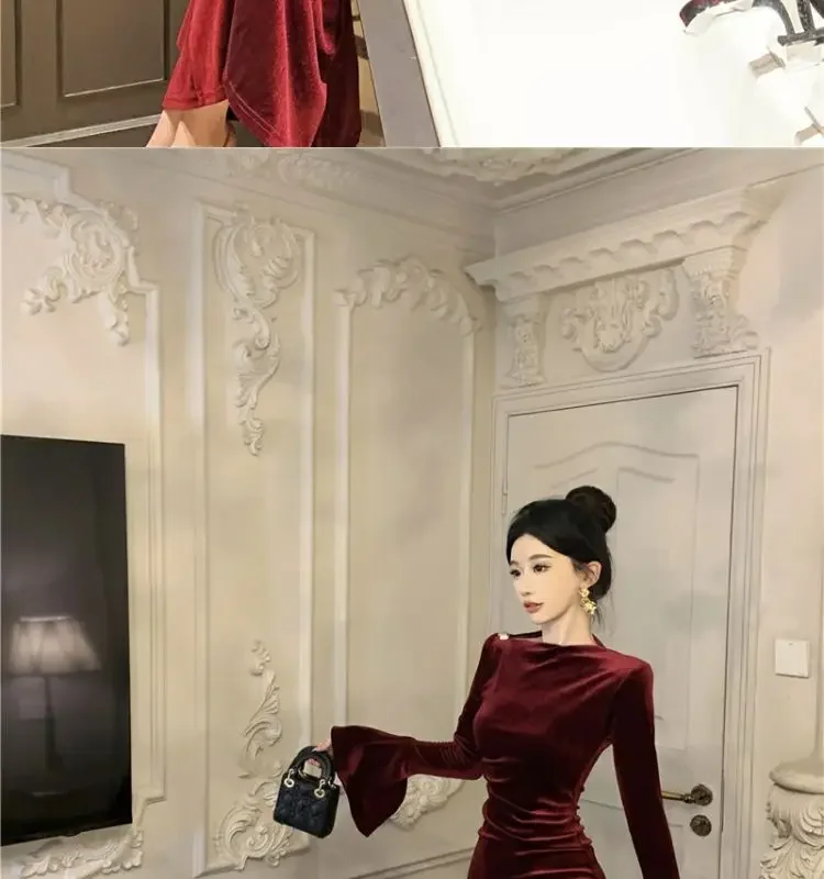 Internet Celebrity High-End-Samtkleid Leichtes, temperamentvolles, hoch tailliertes, schlankes, burgunderrotes Fischschwanzkleid