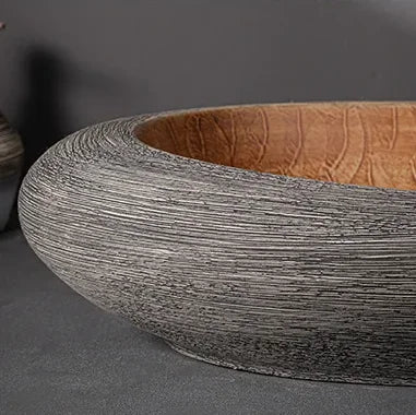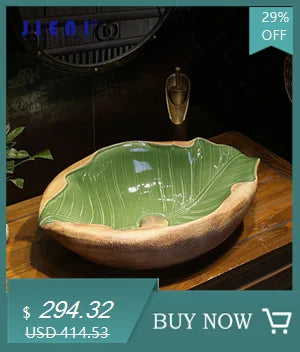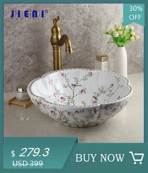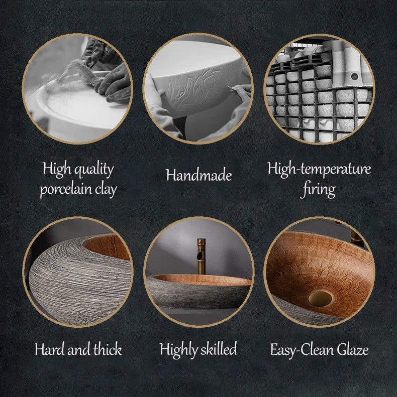 JIENI Art Keramik-Badezimmer-Waschbecken-Set, ovales Waschbecken, antikes Messing, Bambus-Wasserhahn, Pop-Up-Abfluss-Kombination, hochwertige Waschbecken aus Porzellan