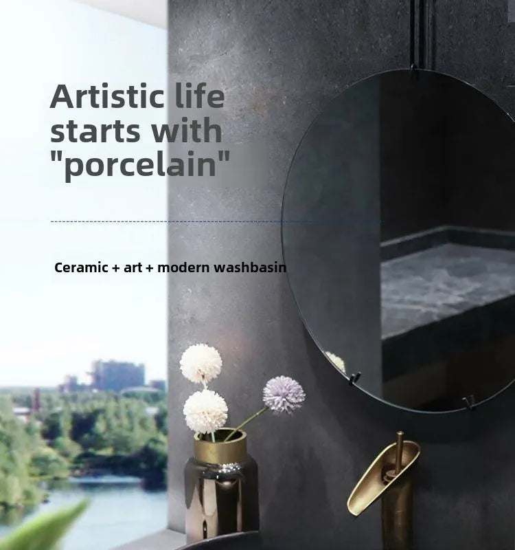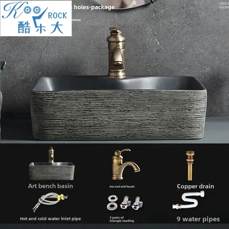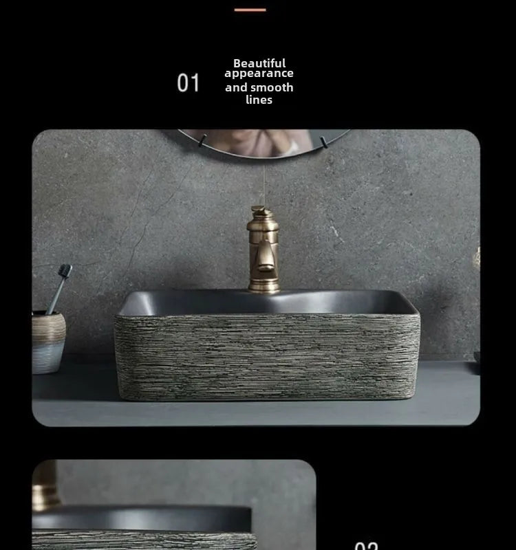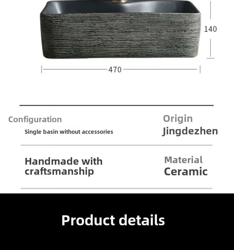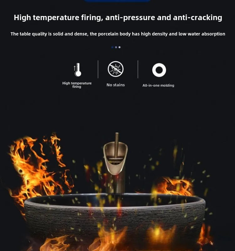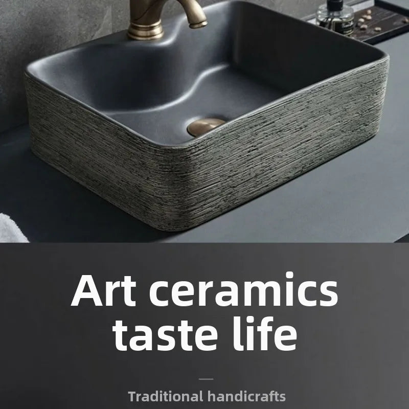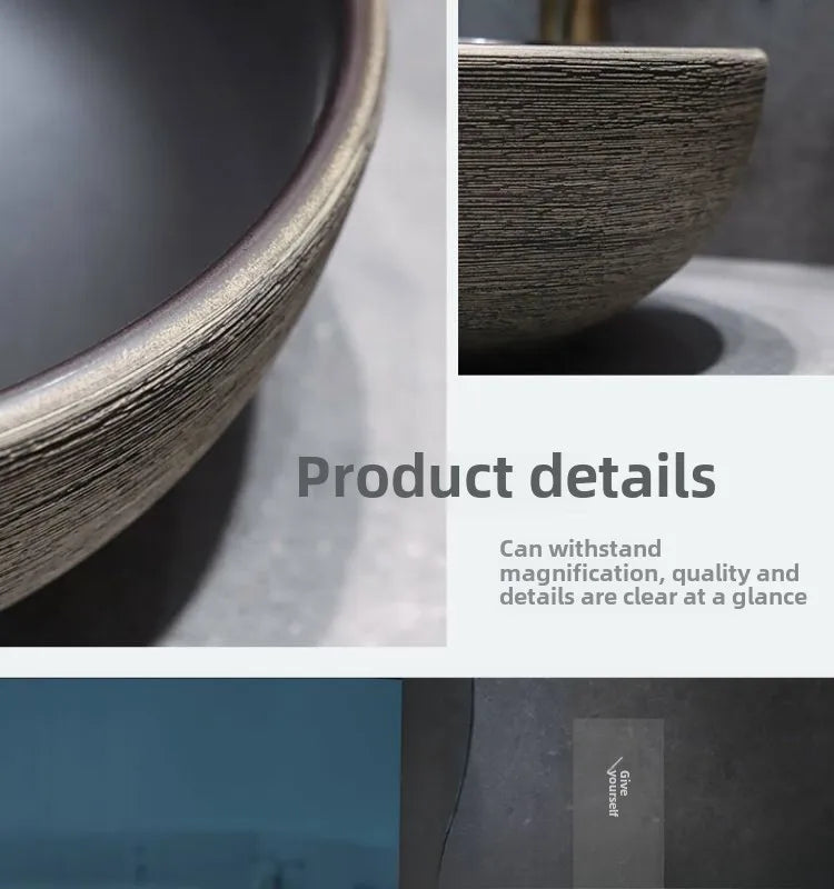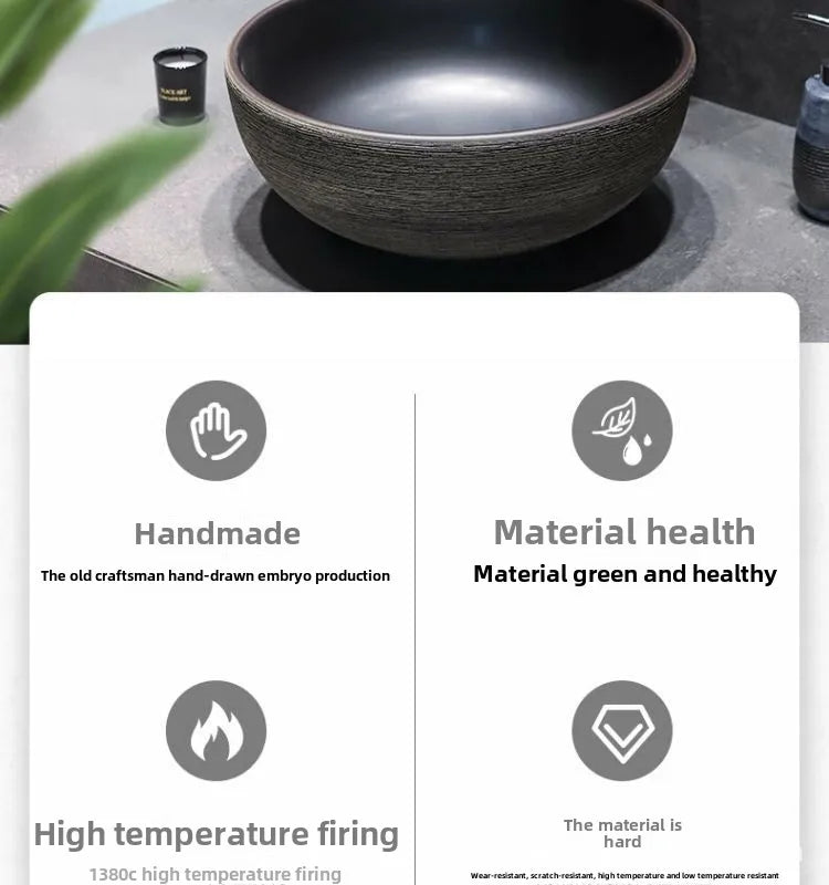 Jingdezhen Keramikgefäßwaschbecken – handgefertigtes rustikales Schwarz- und Sandkunstwaschbecken mit Spritzschutz-Design für den Badezimmer-Waschtisch individuell anpassbar