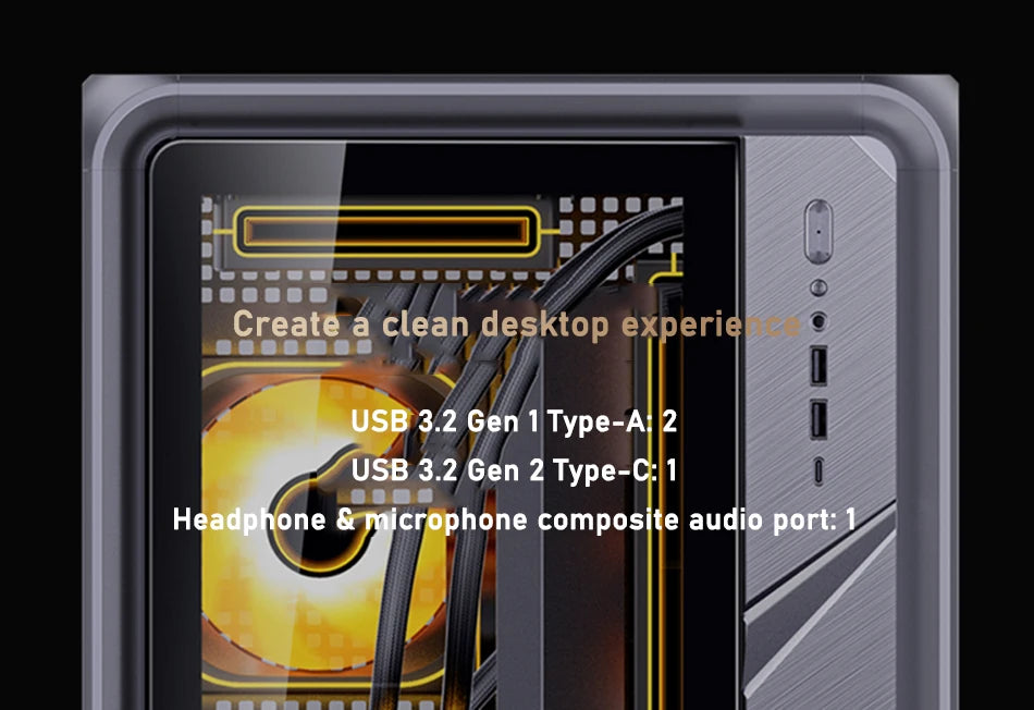 Front Ports: USB3.2 Gen1 Type-A*2/USB3.2 Gen 2 Type-C*1/AUDIO*1 & MIC*1