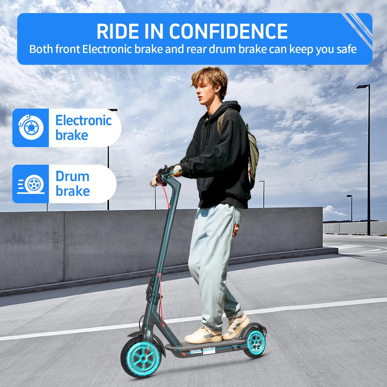 Dual lighting system Escooter: 8.5inch Tire size