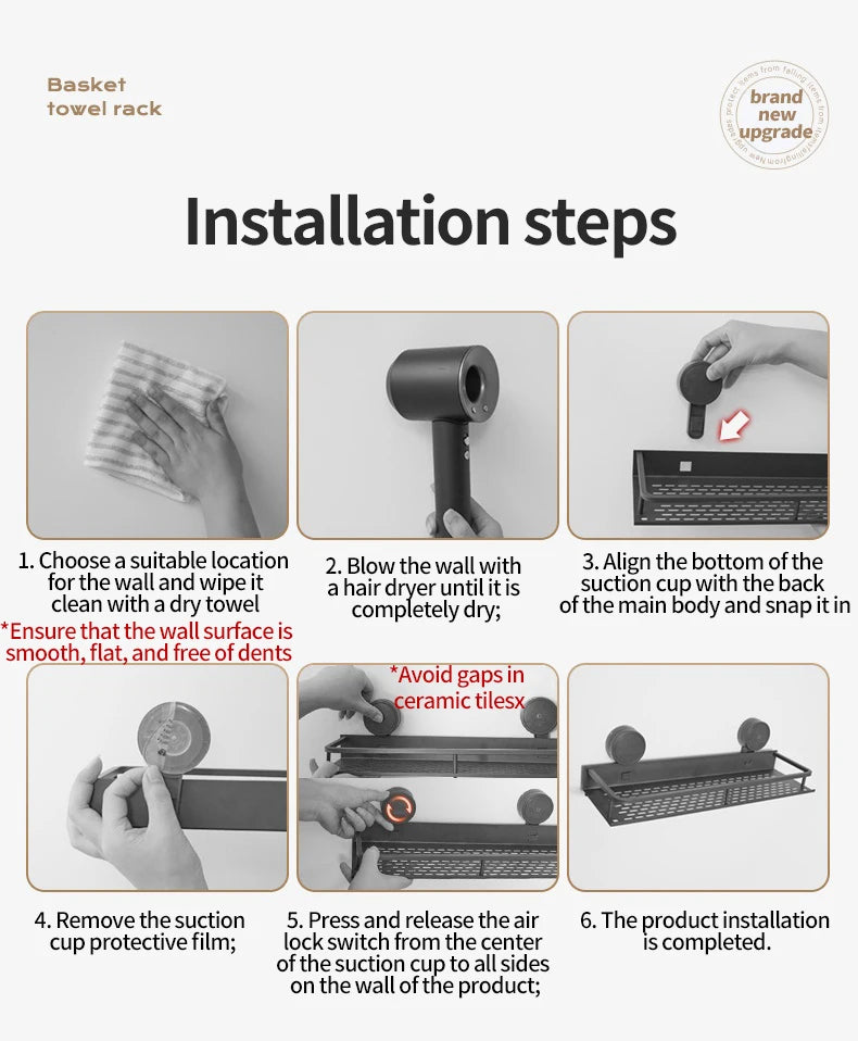 Kein Bohren Saugnapf Saug Badezimmerregal an der Wand Badezimmerregal Toilettenraum Aluminium Hängeregal Badezimmer Organizer Hängen