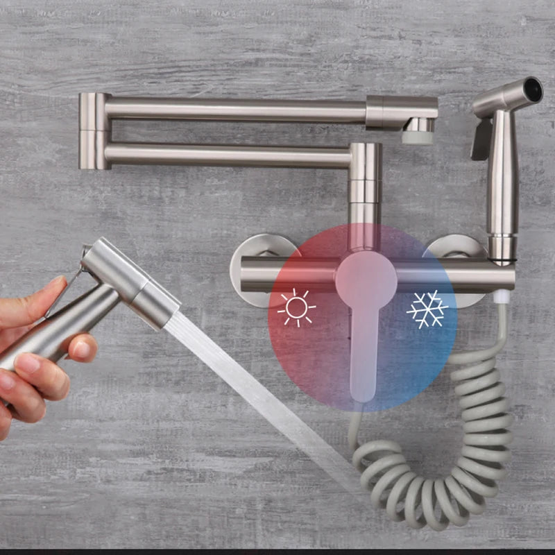 KEMAIDI Pot Filler Faucet Wall Mount Folding Faucet 2 Handle with Double Joint Swing Arms Brass Commercial Kitchen Faucets