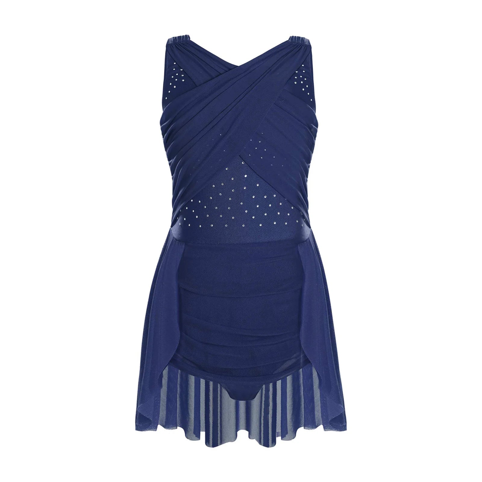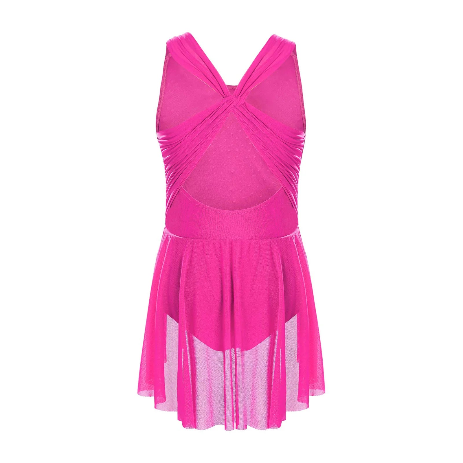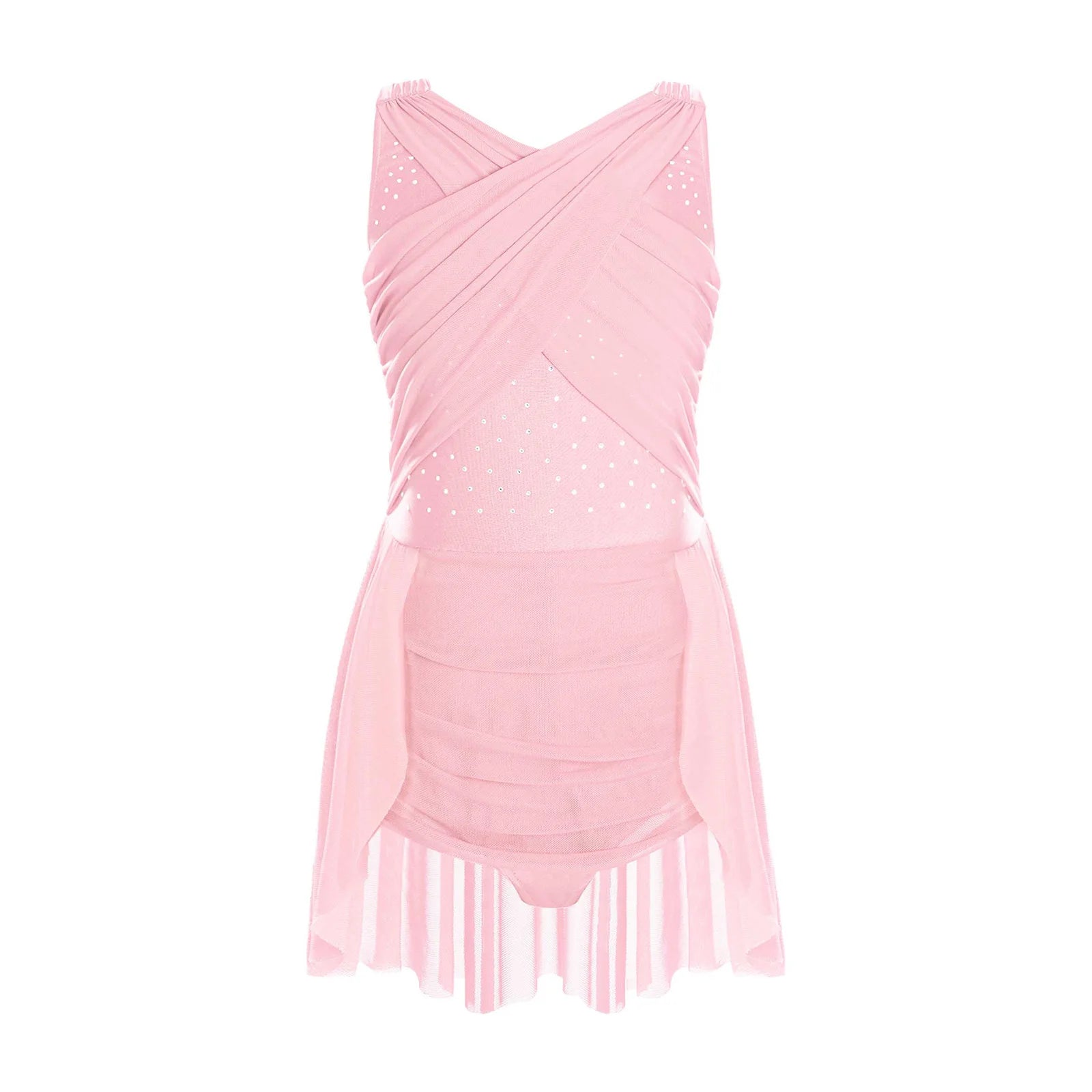 Kinder Mädchen Ärmellose Ausschnitt Strass Eiskunstlauf Trikot Kleid Lyrical Dance Gymnastik Akrobatik Leistung Kostüm