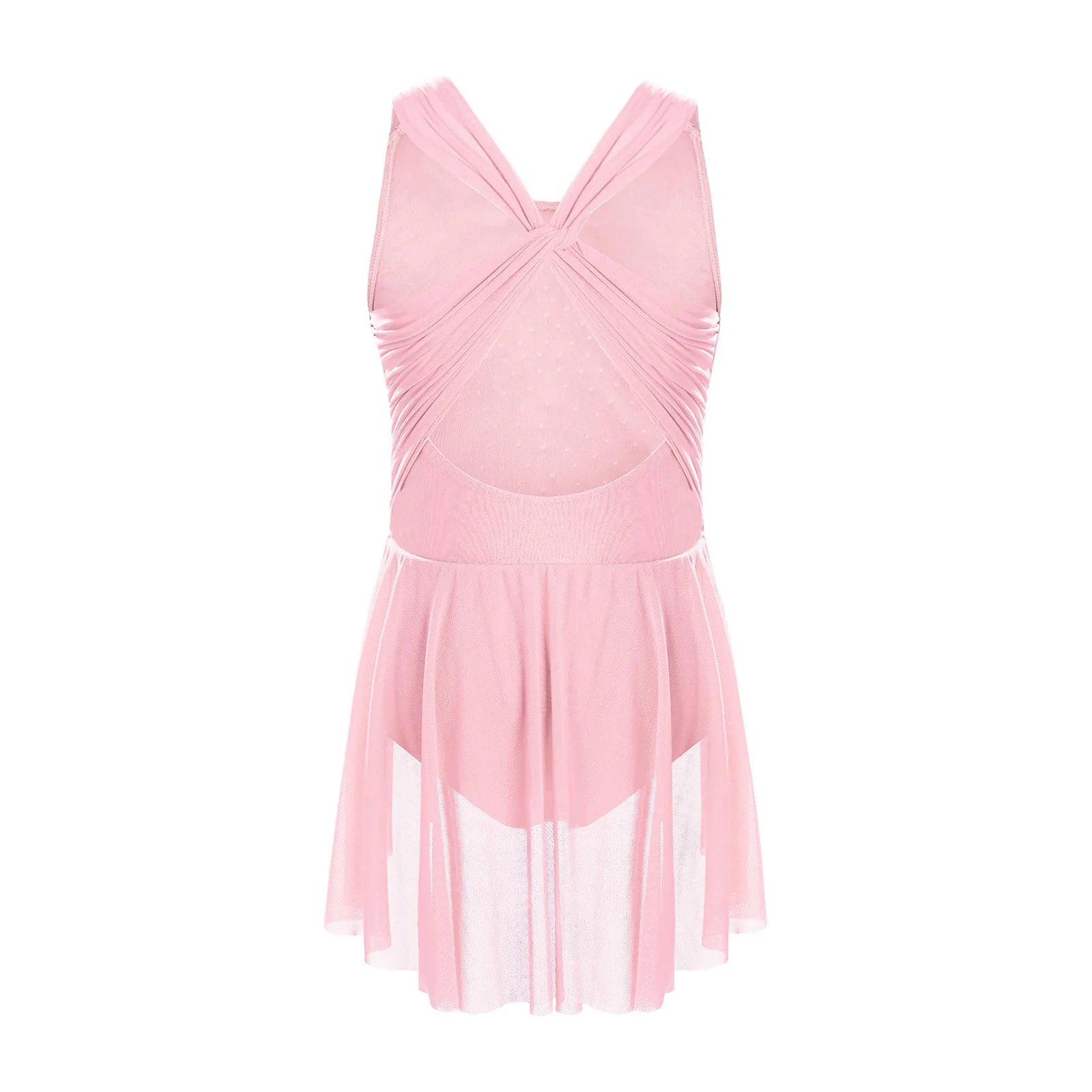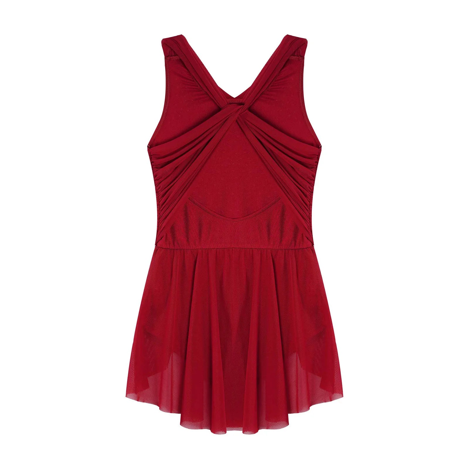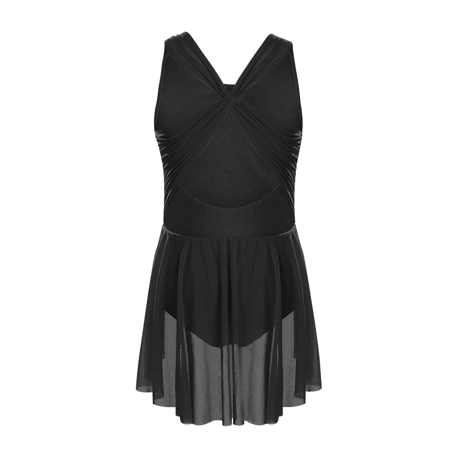 Kinder Mädchen Ärmellose Ausschnitt Strass Eiskunstlauf Trikot Kleid Lyrical Dance Gymnastik Akrobatik Leistung Kostüm