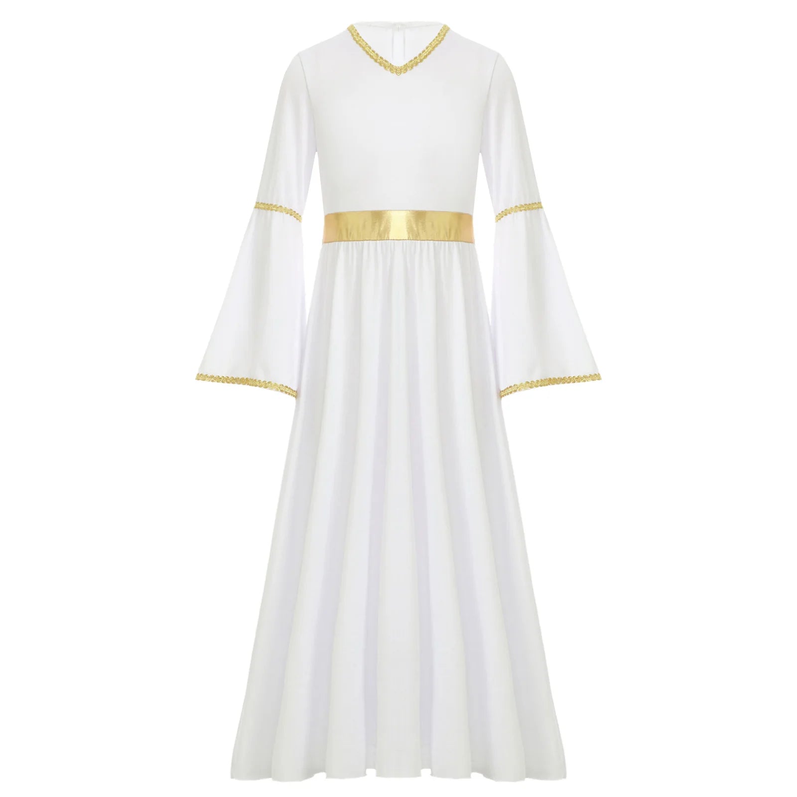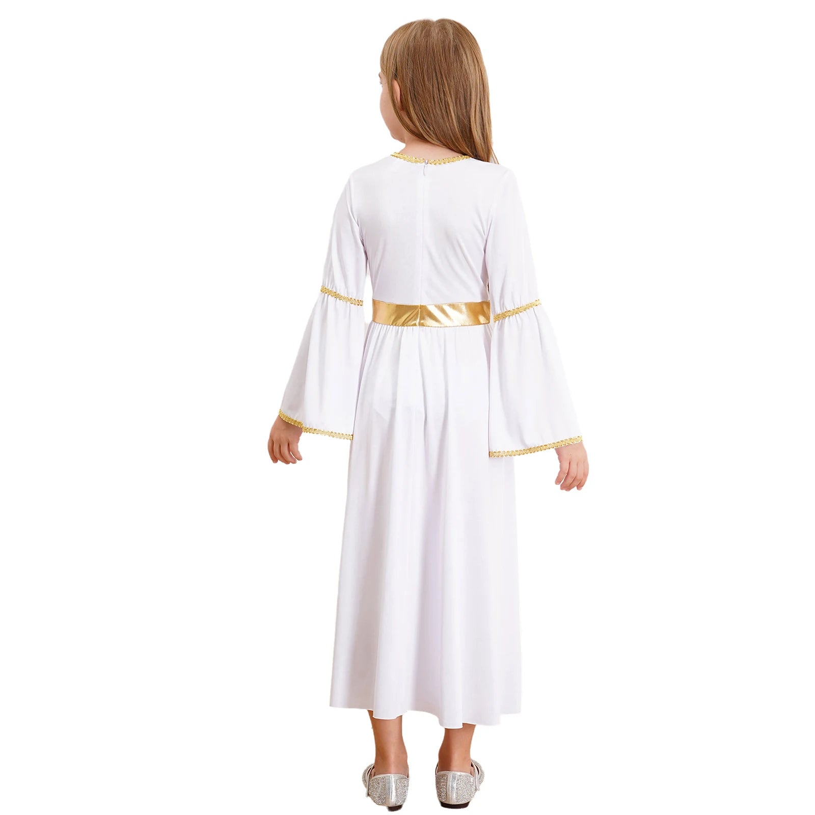Kinder Mädchen Engel Kostüm Weiß Griechischer Gott Robe Halloween Cosplay Kleid Rollenspiel Karneval Performance Kleid mit Flügeln Dress Up