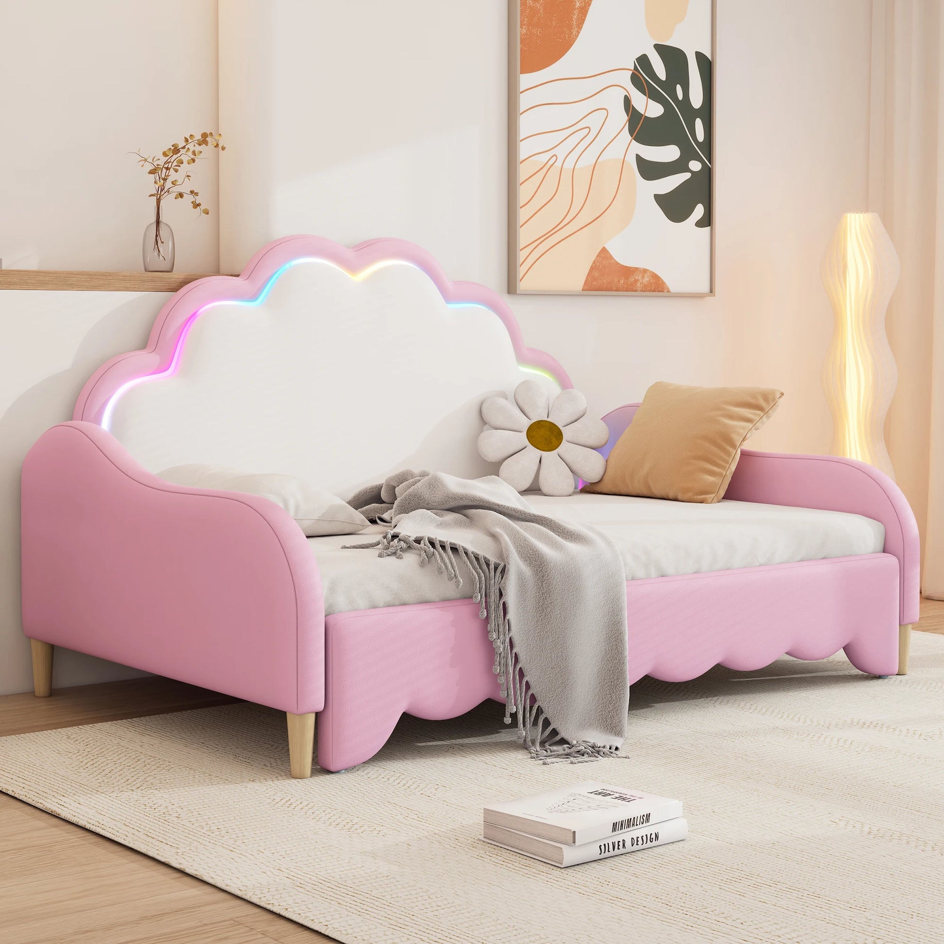 Kinderbett 140×200/140×90 cm mit Lattenrost, Tagesbett Kinder- & Jugendbett mit Umgebungslicht, ohne Matratze