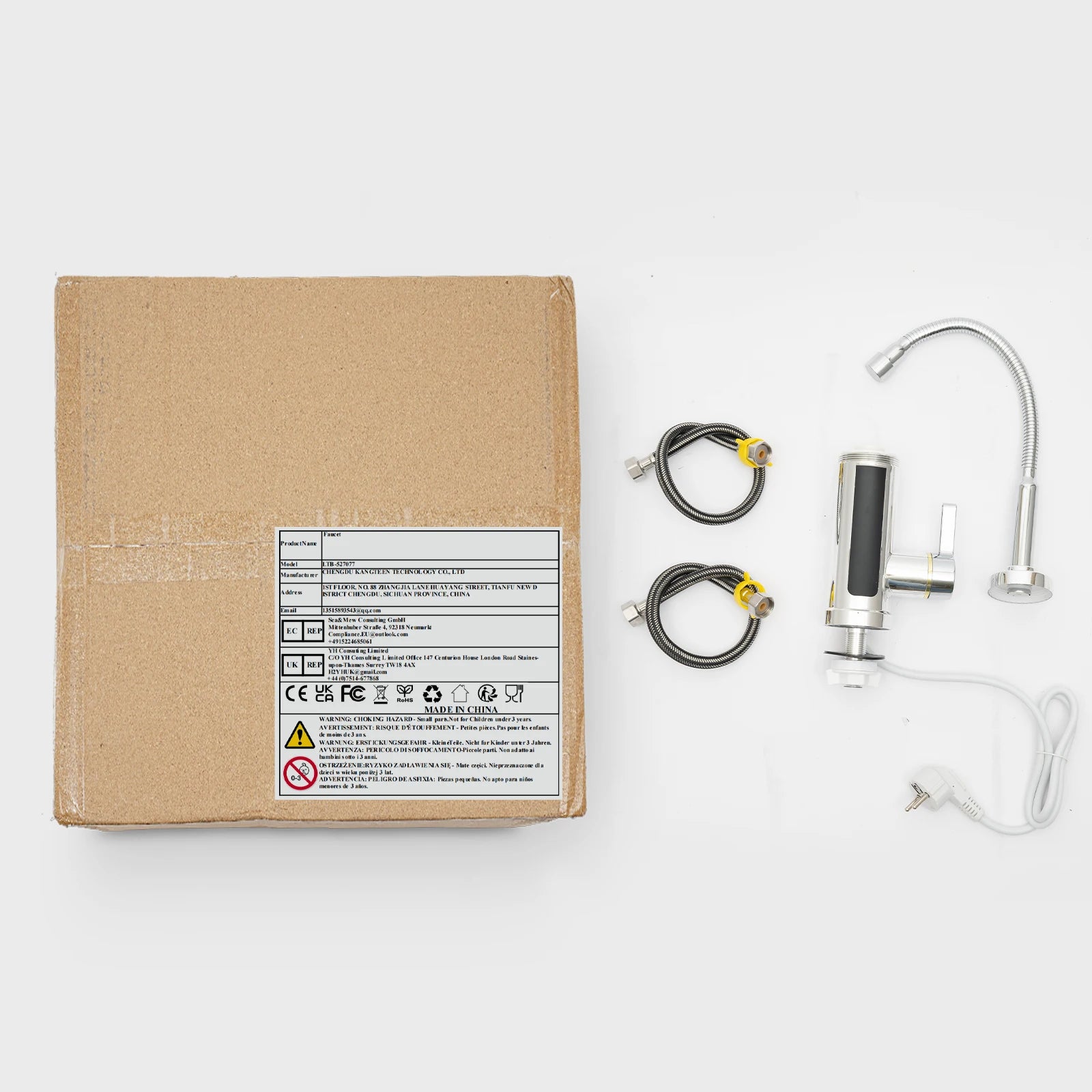 Kitchen Faucet with 360° Rotating Outlet, Hot & Cold Water Adjustment, Stainless Steel Pipe & LED Temperature Display