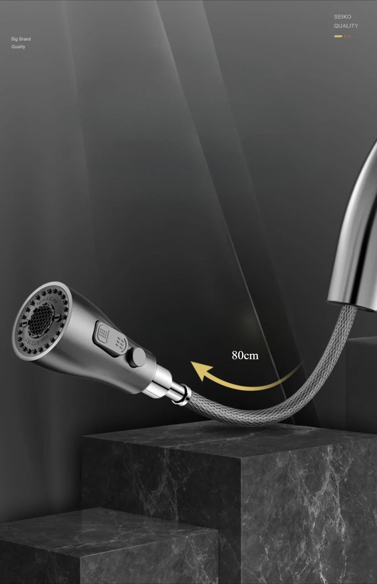 Kitchen Faucets Fine copper gun gray kitchen sink pull-out faucet household sink washbasin rotating hot and cold faucet
