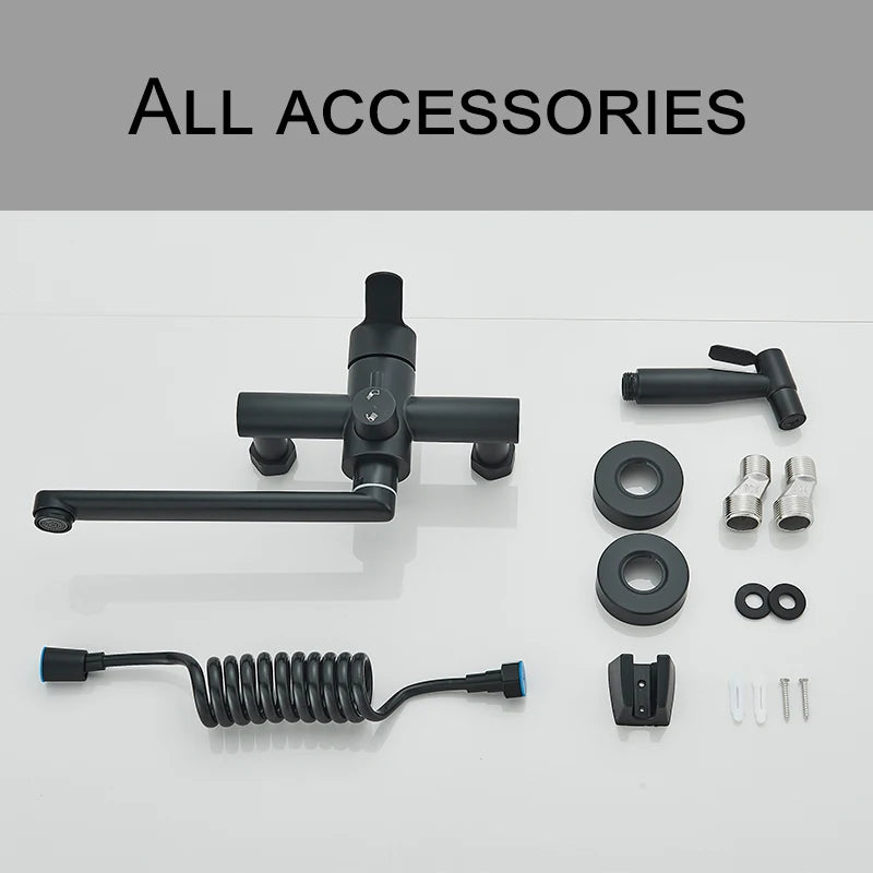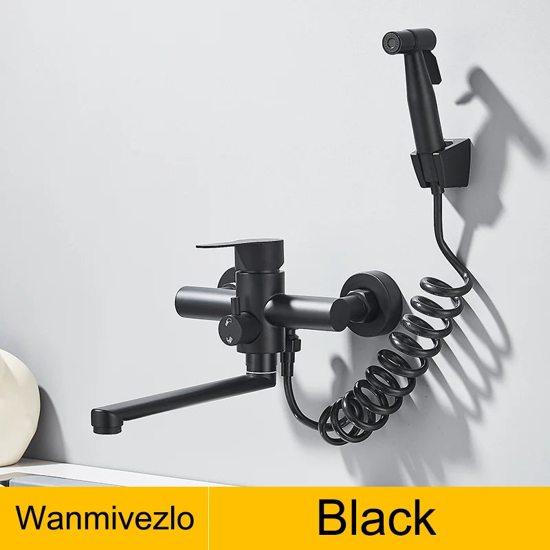 Kitchen Faucets Stainless Steel Wall Mounted Dual Hole Bathroom 360 Rotate Basin Faucet Cold Hot Water Mixer Taps With spray gun