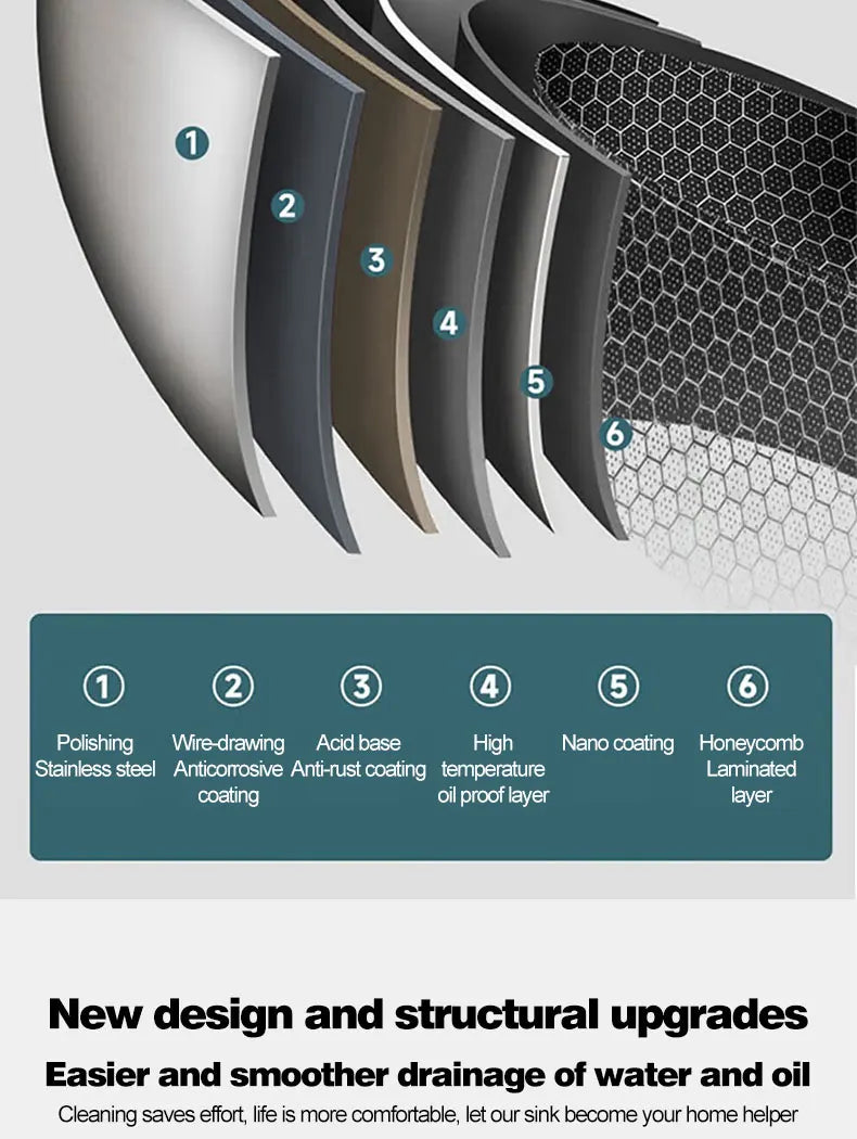 Kitchen Sink 304 Stainless Steel Rain Waterfall Single Trough Honeycomb Large Single Trough Washing Basin