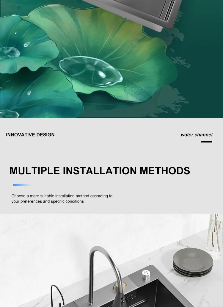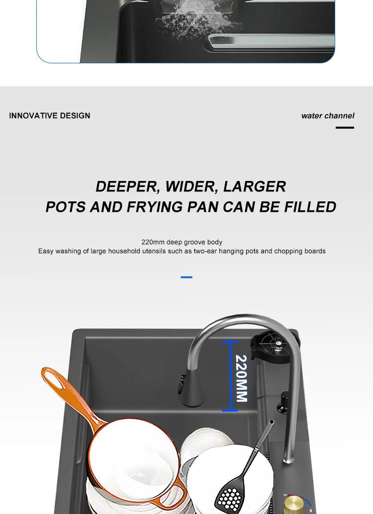 Kitchen Sink Stainless Steel Large Single Slot Multifunctional Tank Wash Basin With Waterfall Faucet Lowe Price