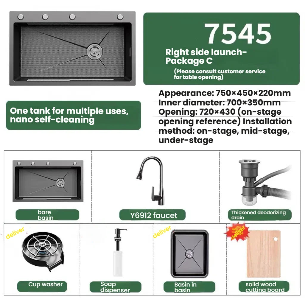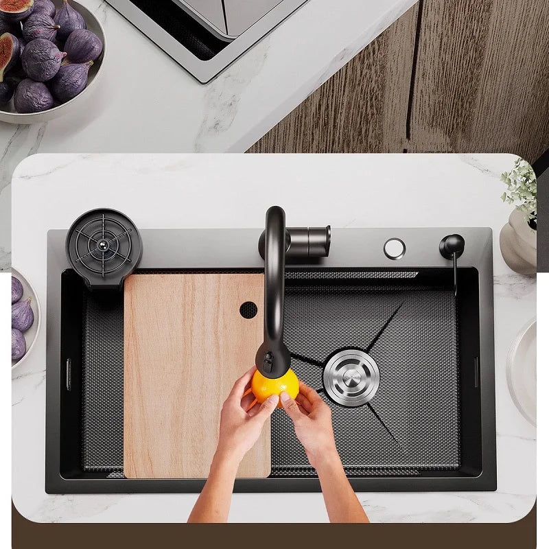 Kitchen Sink Stainless Steel Rice Grain Pattern Multifunctional Wear and Stain Resistant Large Single Slot Wash Dish Basin