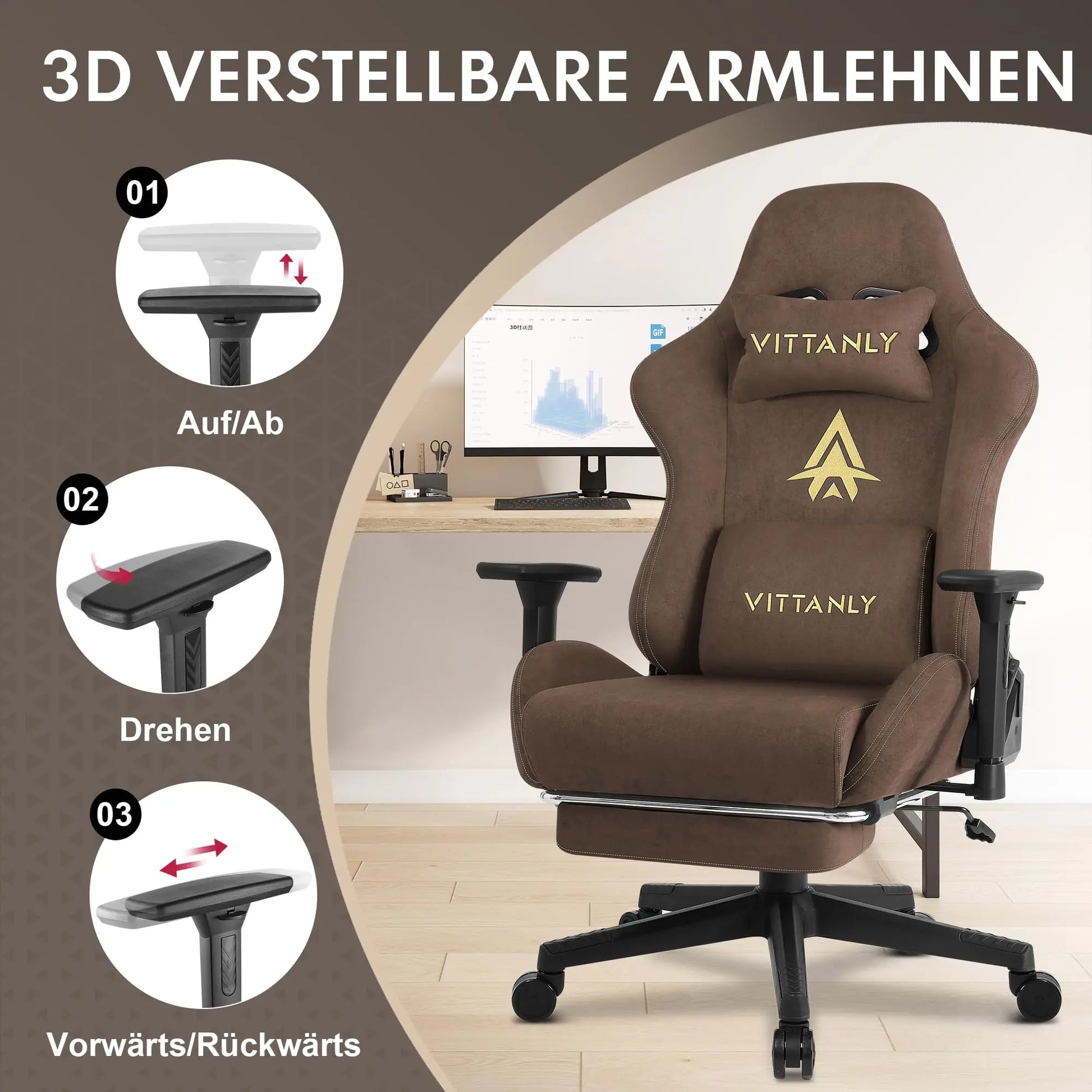 KITINJOY Gaming-Stuhl für Erwachsene mit Fußstütze, Lordosenstütze, Stoff, Computer-Bürostuhl, hohe Rückenlehne, ergonomischer Gamer-Stuhl