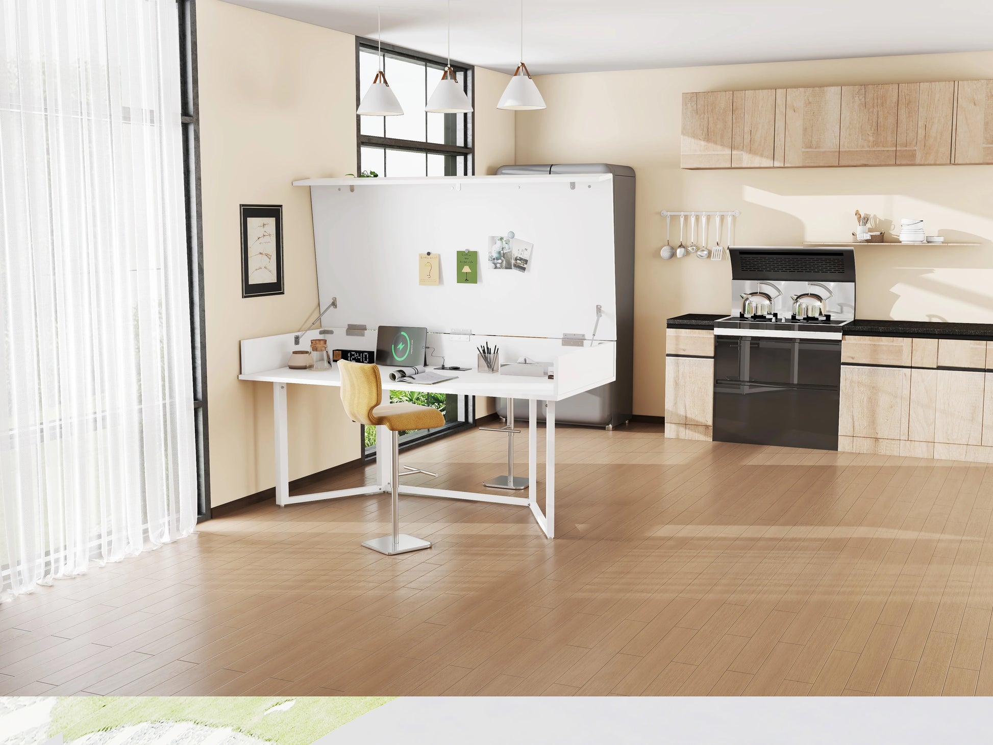 Klappbarer Schreibtisch 120×55cm – Multifunktional, faltbar, mit europäischen Steckdosen, Muschel-Design zum Verstecken des Unordnunges auf dem Schreibtisch – Geeignet