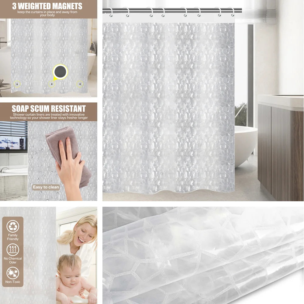 Klarer Duschvorhang, PEVA, transparent, für Badezimmer, wasserdicht, 180 x 200 cm, Badvorhänge, Badezimmer, schimmelfeste Vorhänge mit Haken