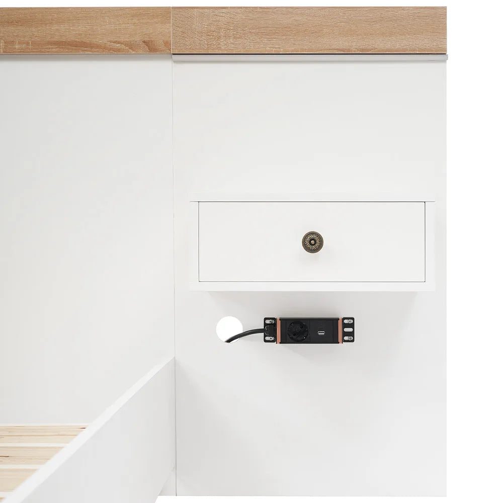 KOMHTOM Doppelbett-Bettkasten mit 2 LED-Nachtkommoden & USB-C-Steckdose, 180 x 200 cm Holzbett inkl (ohne Matratze)