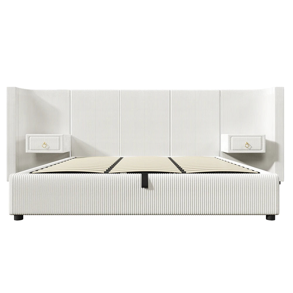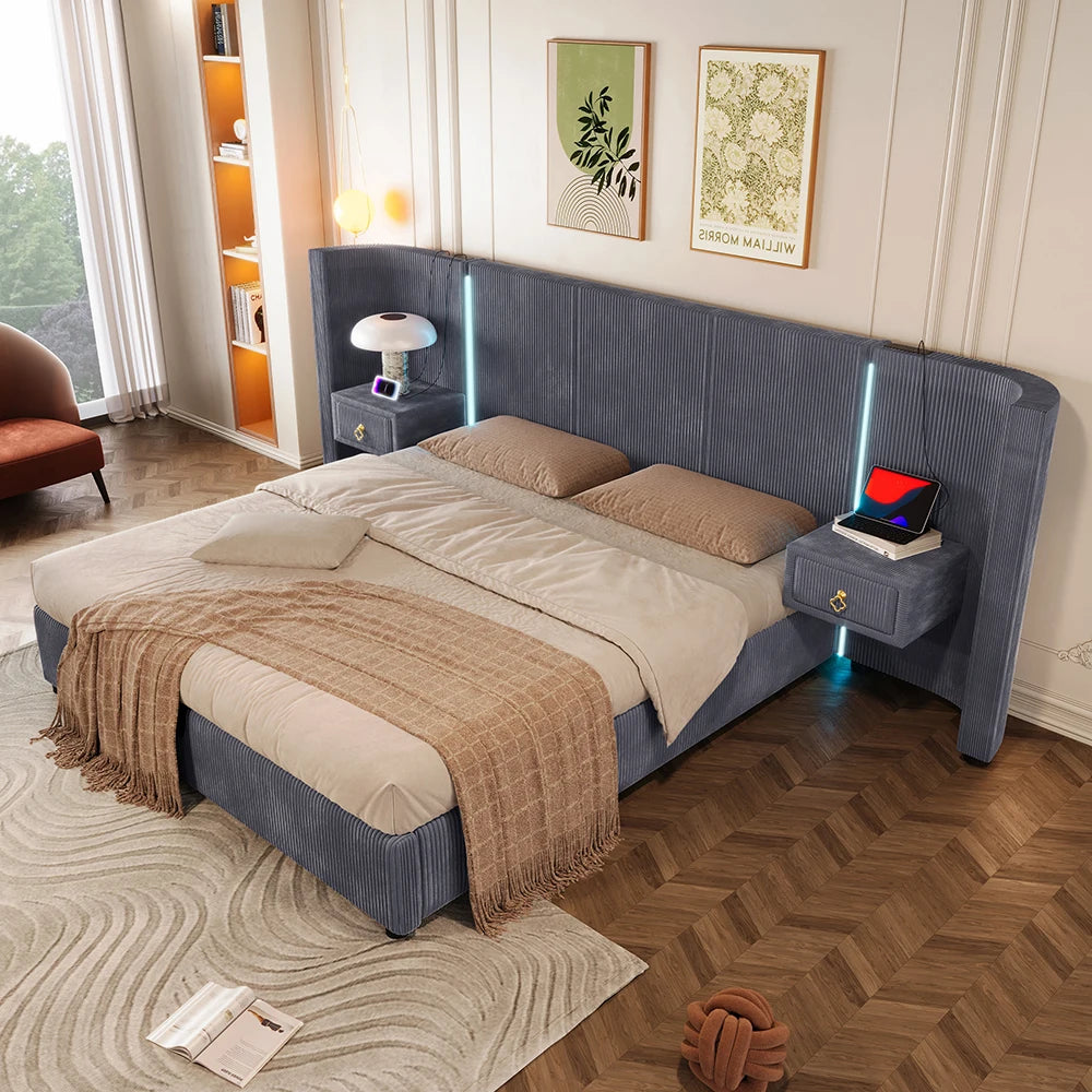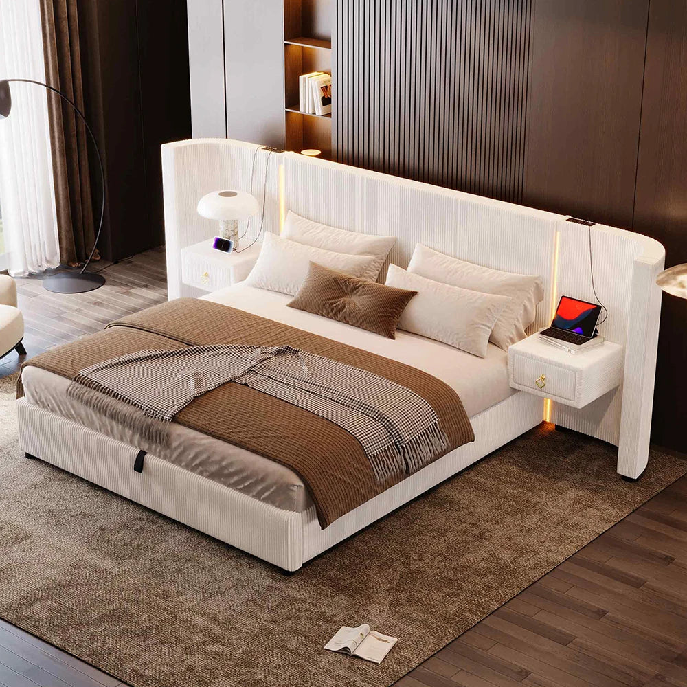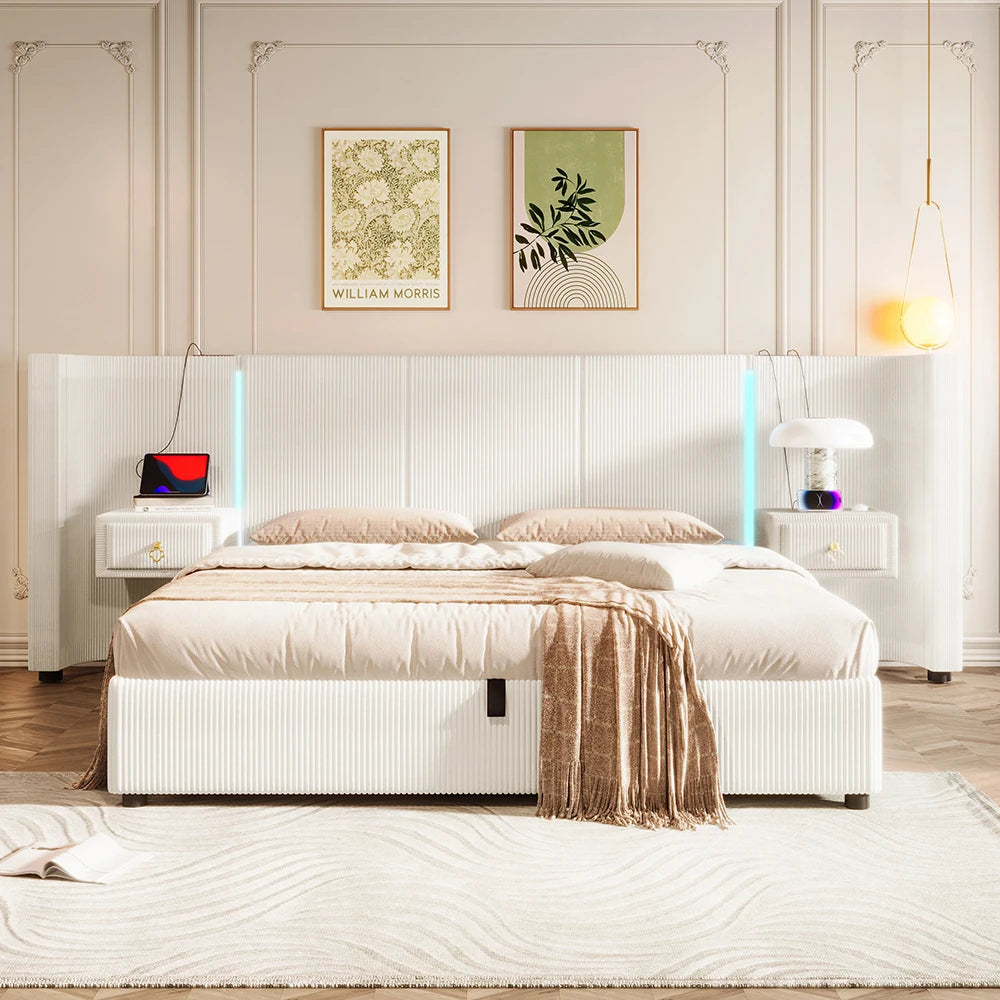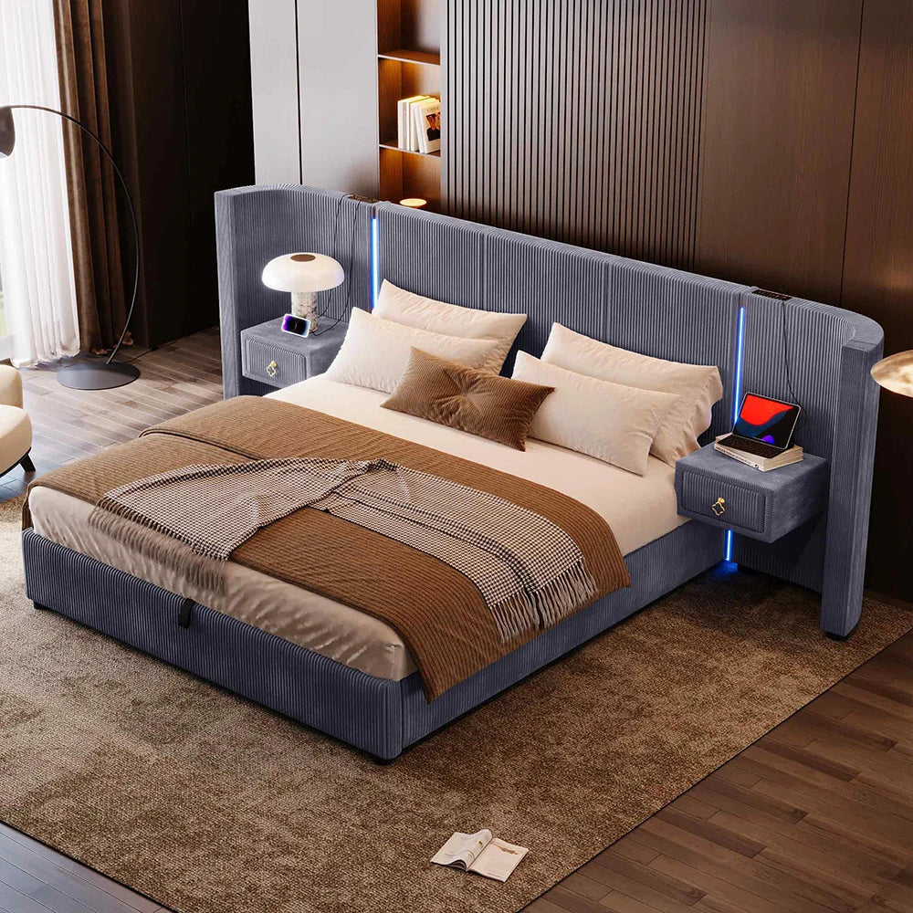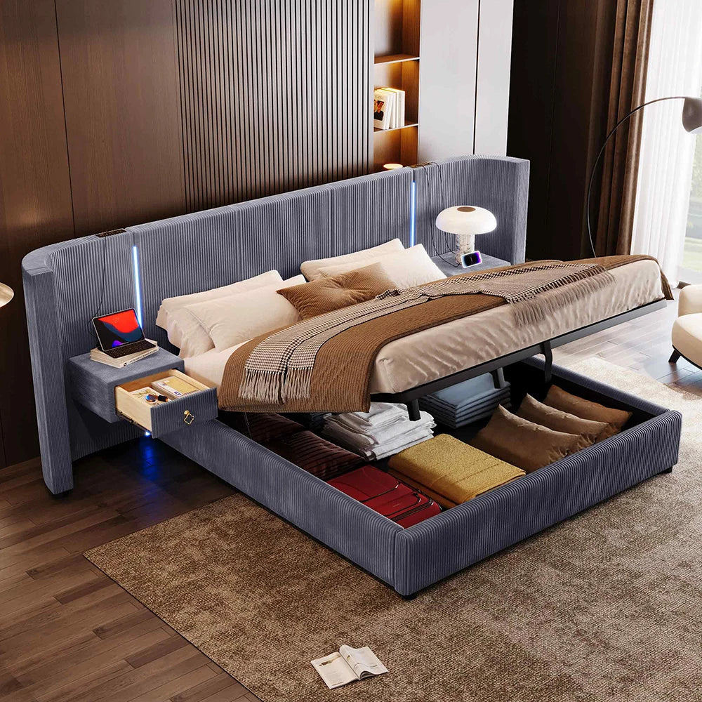 KOMHTOM Polsterbett 180x200cm, Samt mit, LED-Leiste, hydraulischem Stauraum, 2 Schubladen und USB+TYPE-C Anschluss