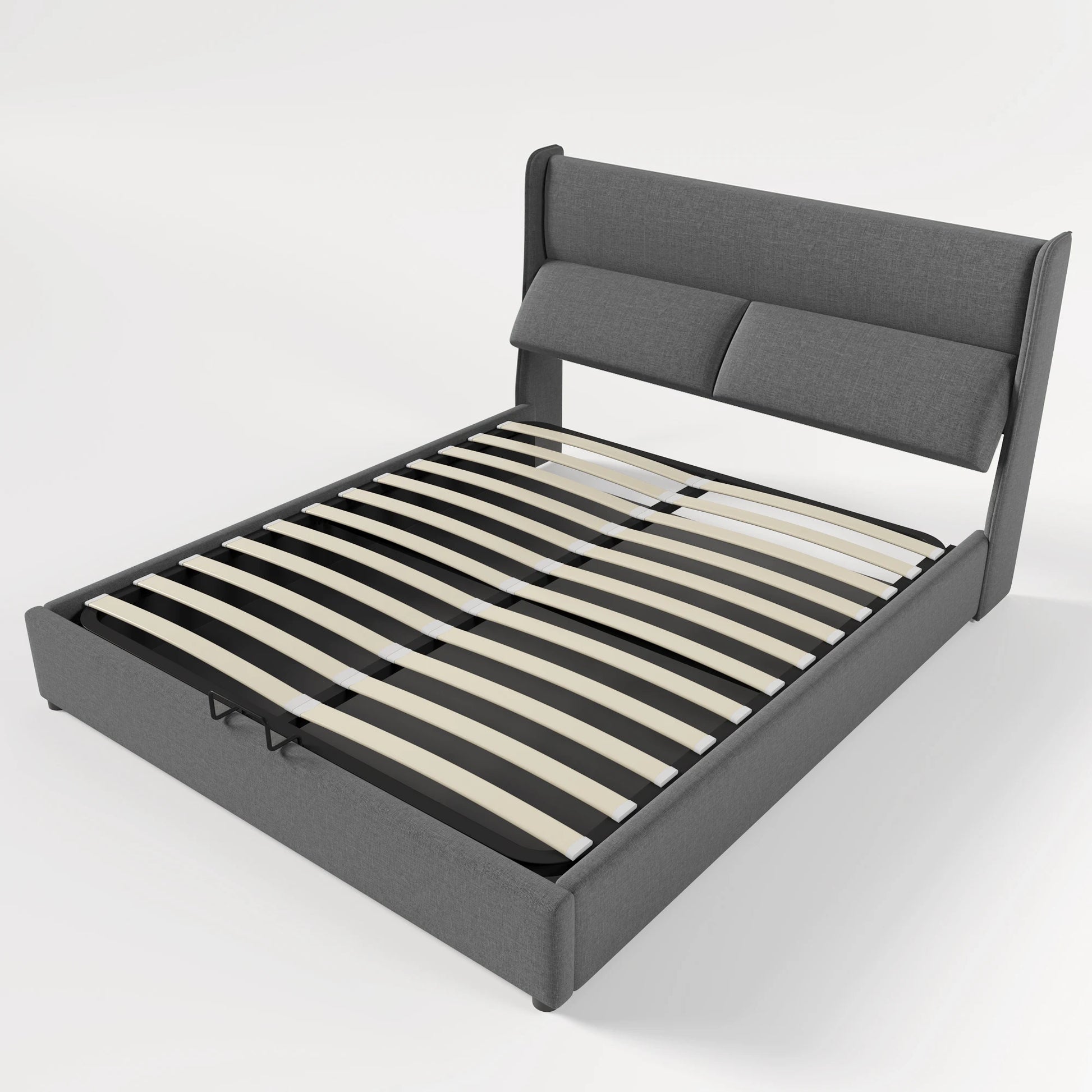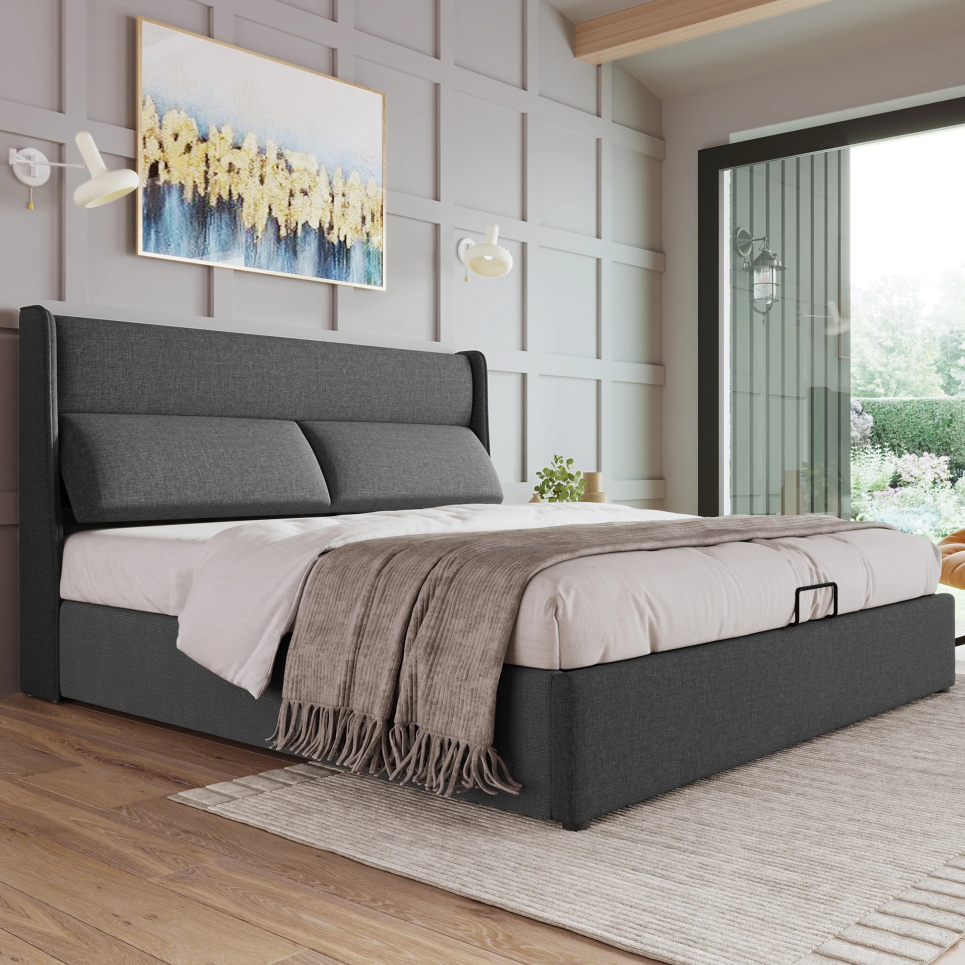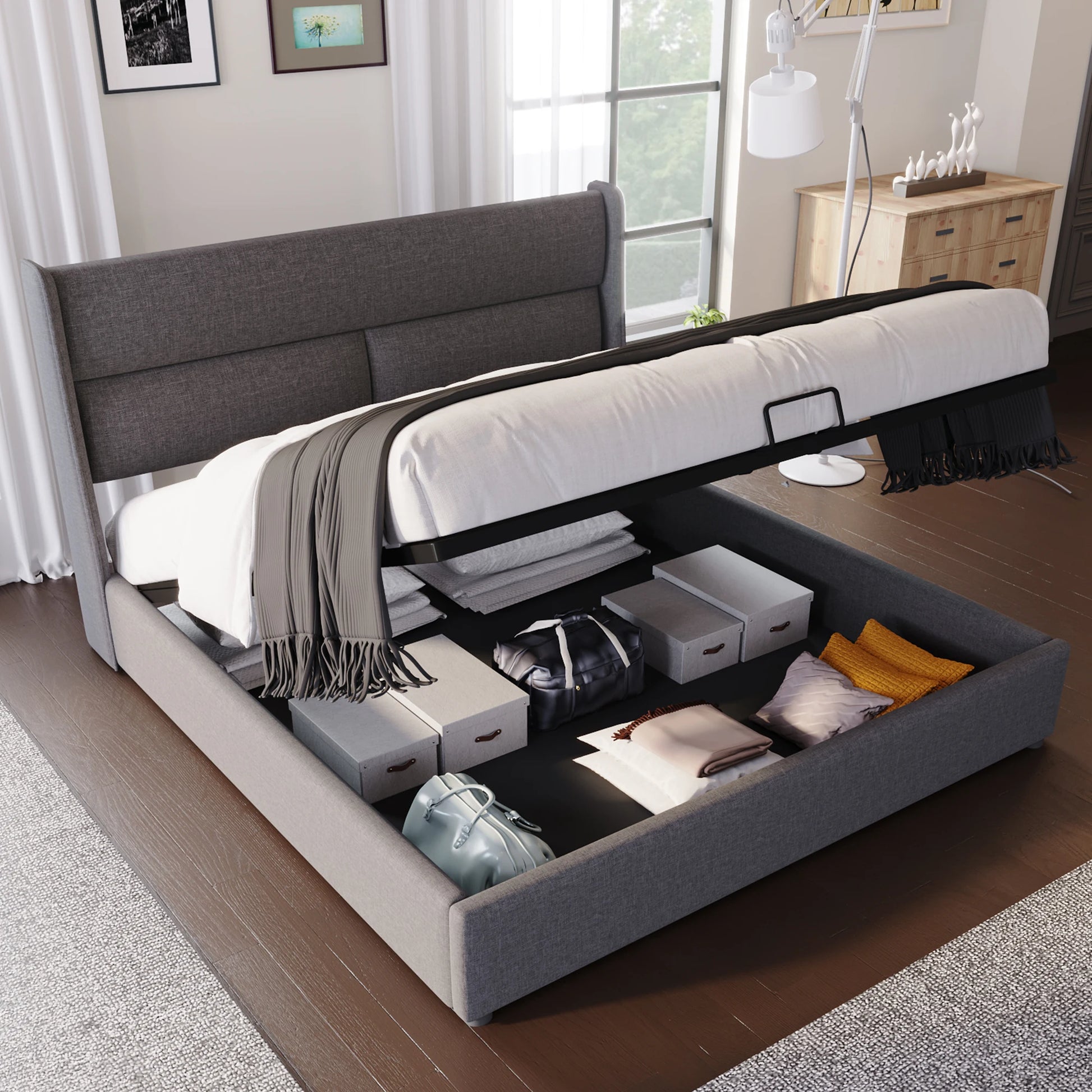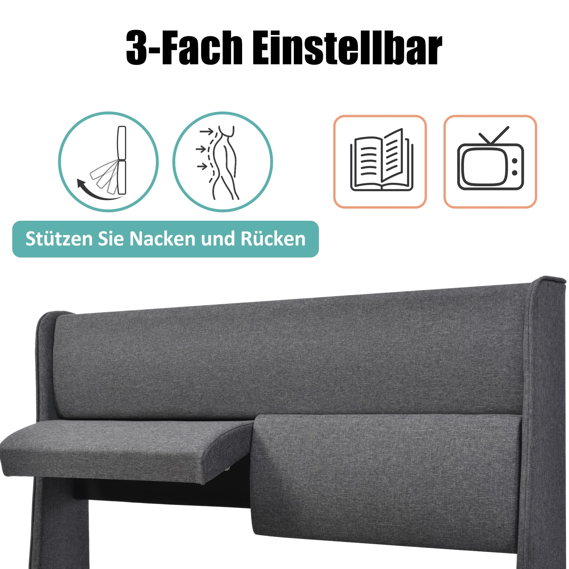 KOMHTOM Polsterbett Doppelbett, Verstellbare Kopfstützen, Stauraumbett, ohne Matratze